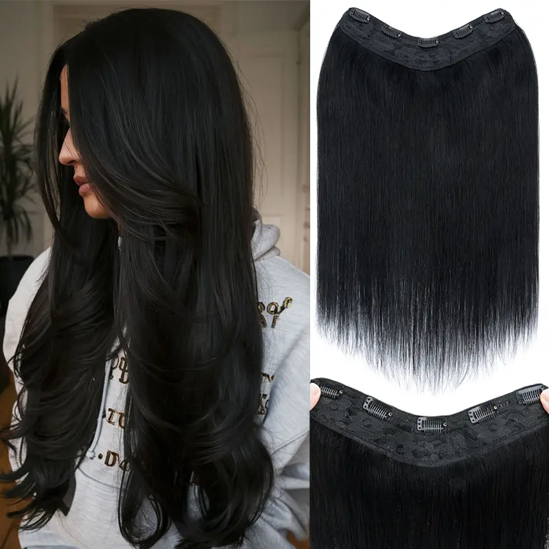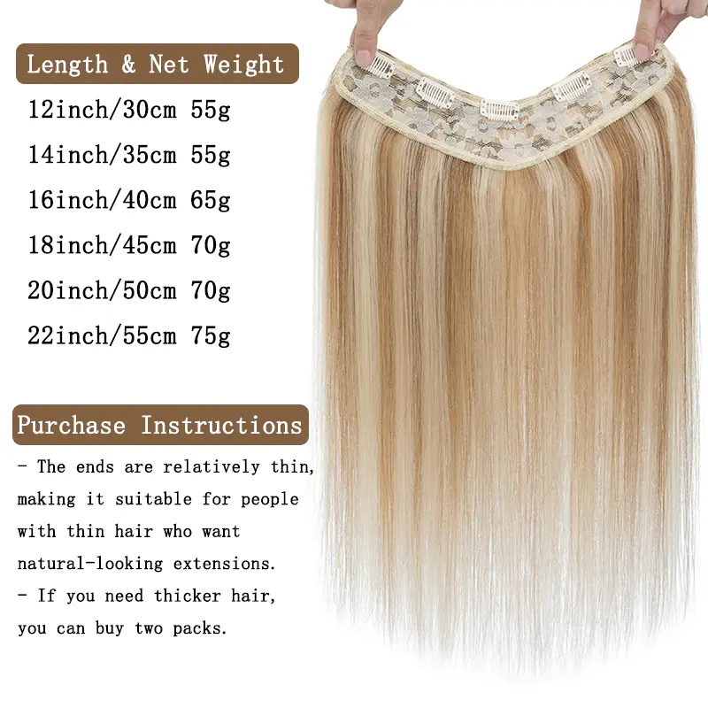 Remy Human Hair Extensions Clip In Hair Extensions V Shape 12 Inch-22 Inch Long Straight Invisible Hairpiece for Women Adding Hair Volume
