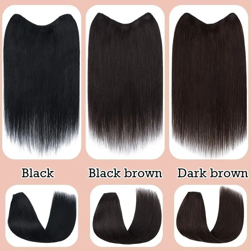 AISI HAIR Invisible Wire Hair Halo Extensions Long Straight Layered Synthetic with Transparent Adjustable Size 6 Secure Clips Hairpieces for Women 20 Inch Essential Tool Durable Sturdy Pre Cut Closure