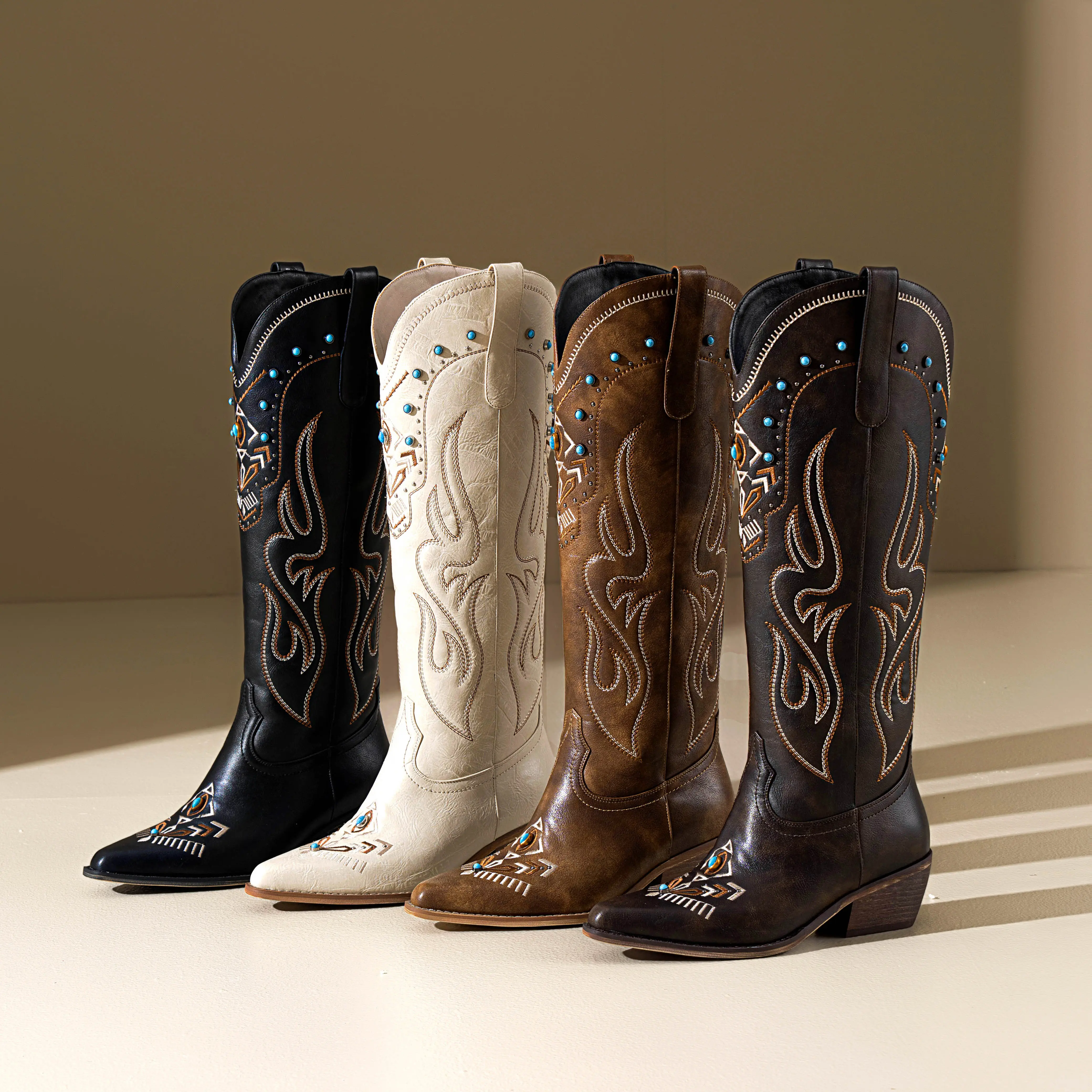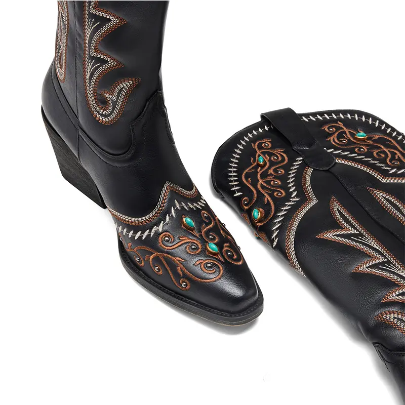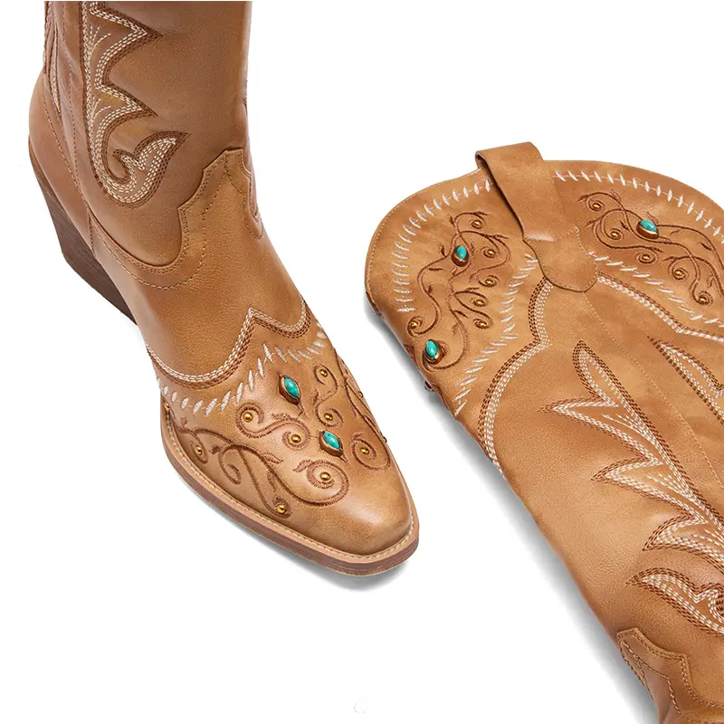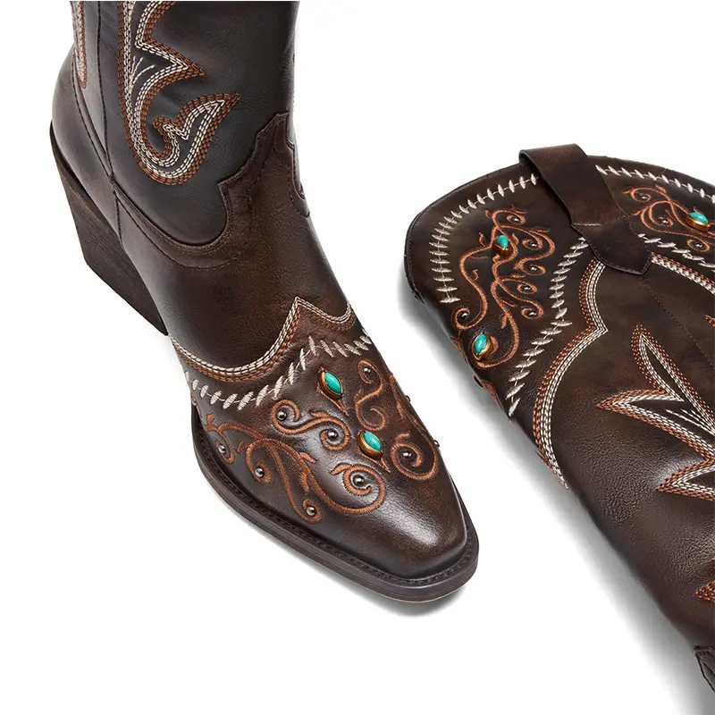 ·Exquisite Embroidery: The boot shaft features classic Western-themed embroidery, harmoniously layered with the base color. Delicate stitching adds a sense of layering. 🪡