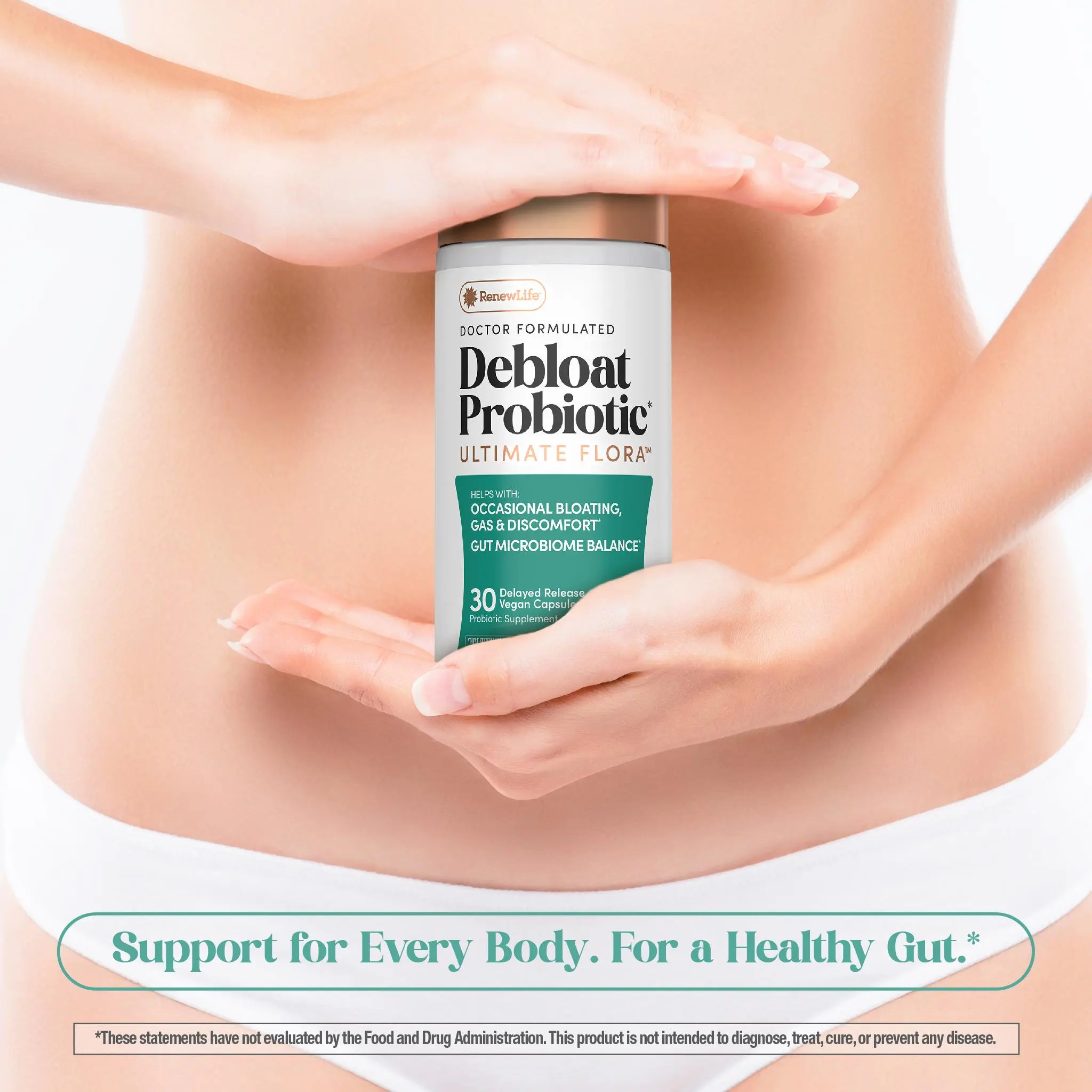 Ultimate Flora Debloat Probiotic is doctor-formulated to work where bloating actually happens – in your gut.*