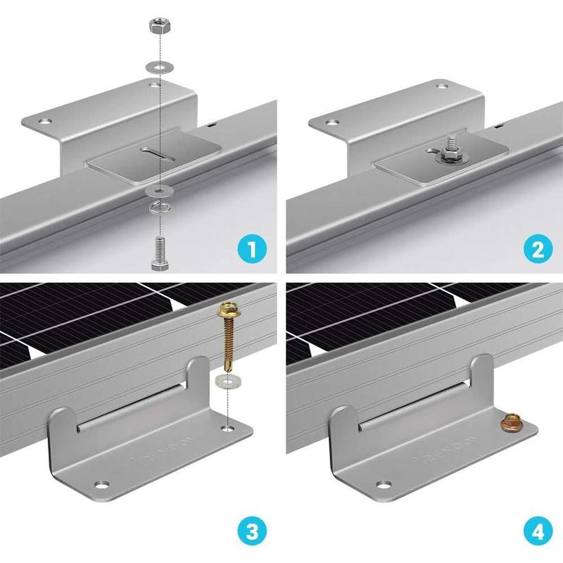 The Renogy Z-Bracket Mount System is designed to support the installation of single solar panel units, generally in off-grid installations. These units are ideal for installation on RV roofs and non-inhabited dwellings such as sheds or garages. It is also suited as attachment to a user made structure such as a wooden frame. The system comes complete with all fasteners to secure the system to the installation surface. This system makes the installation of small solar systems easy, affordable and quick.