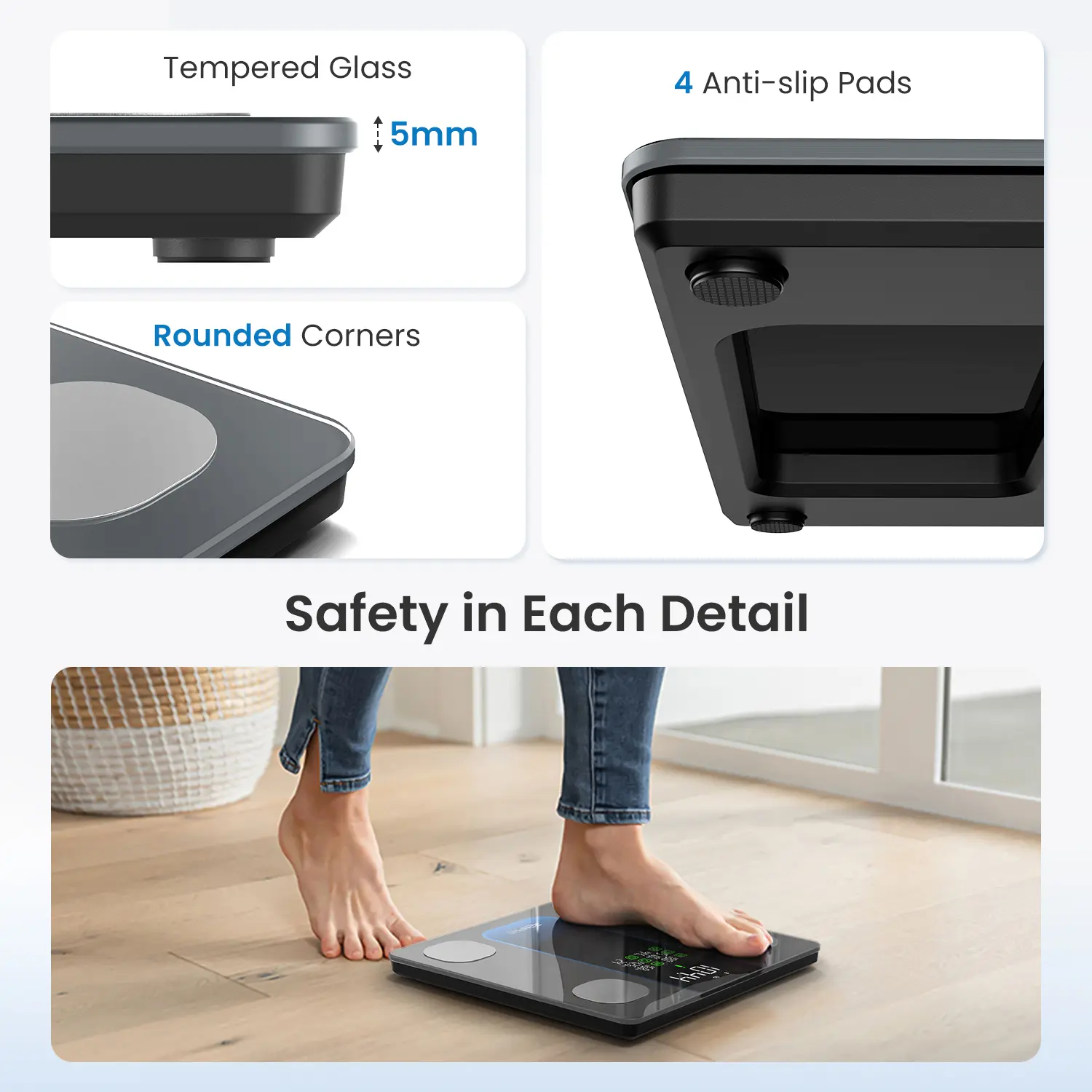 ·Reliable Accuracy: Uses advanced BIA technology with 4 high-precision sensors to measure and analyze body composition accurately.