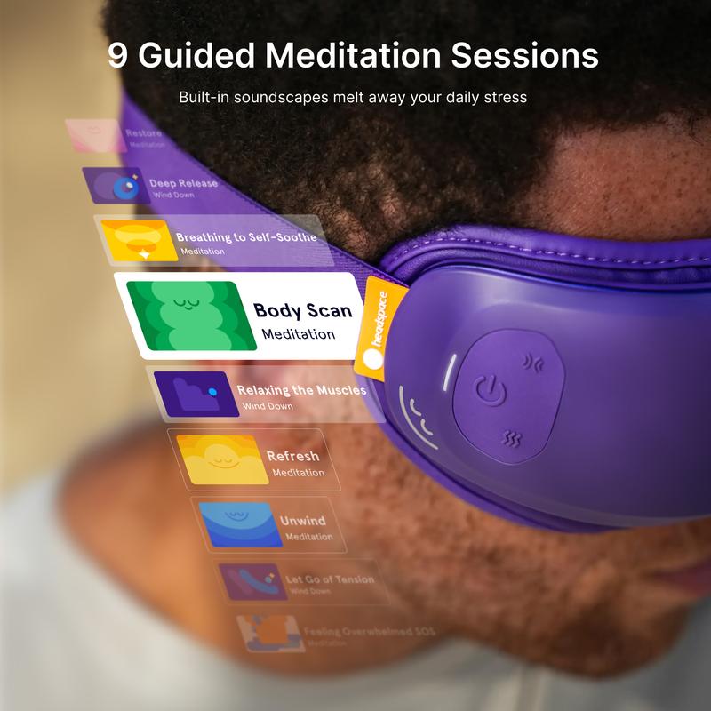 Enjoy built-in calming sounds or connect via Bluetooth to play your favorite Headspace sessions. The 1500mAh battery with USB-C fast charging keeps you relaxed anytime.