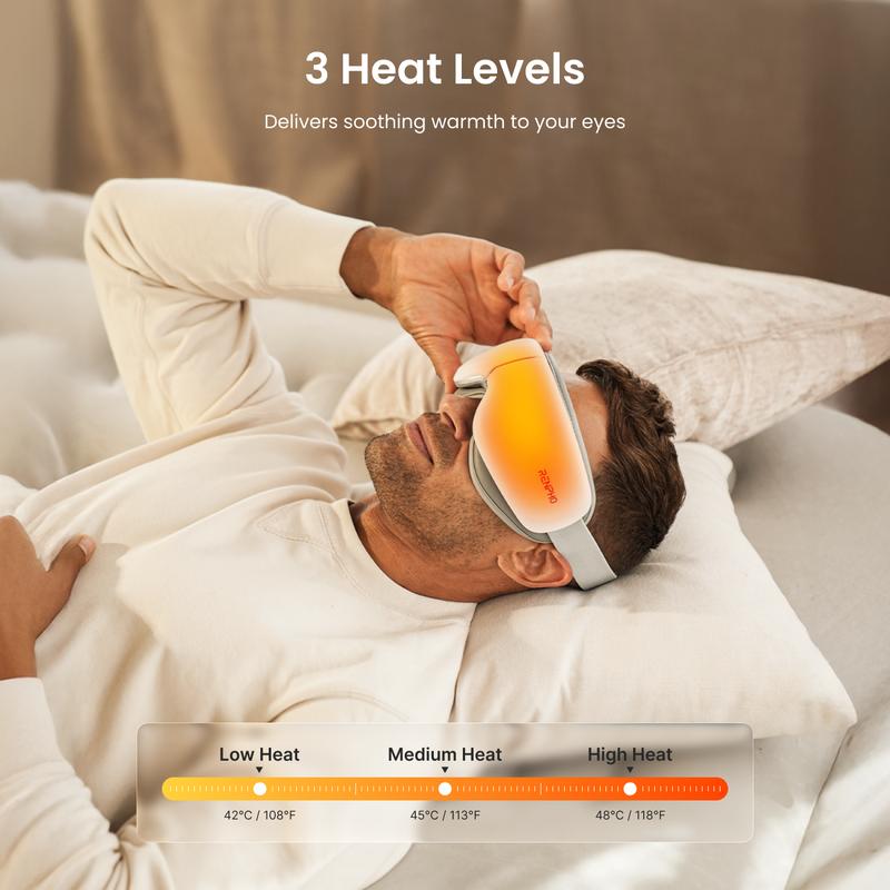 ·Soothing Warmth Therapy: Choose from 3 customizable heat levels (108°F, 113°F, or 118°F) to relieve eye strain, reduce puffiness, and enhance eye cream absorption for a more restful sleep.