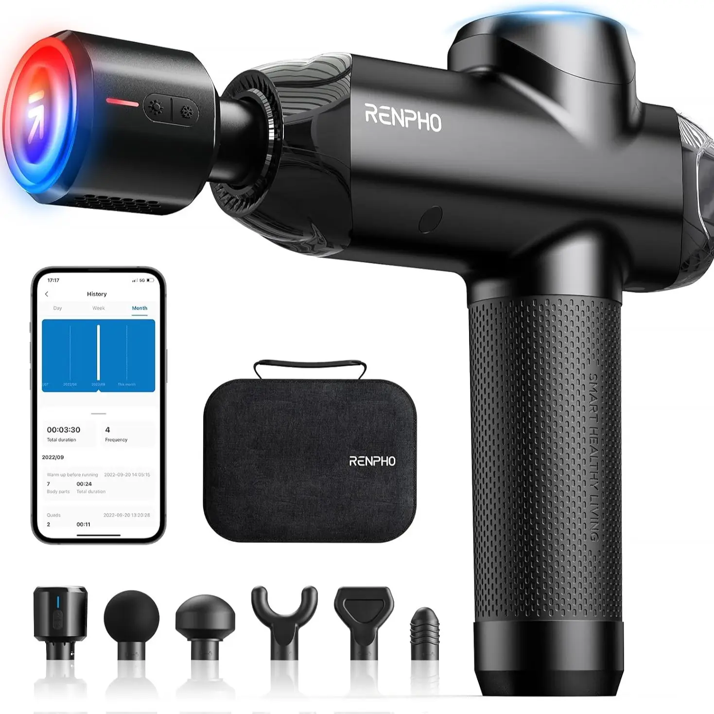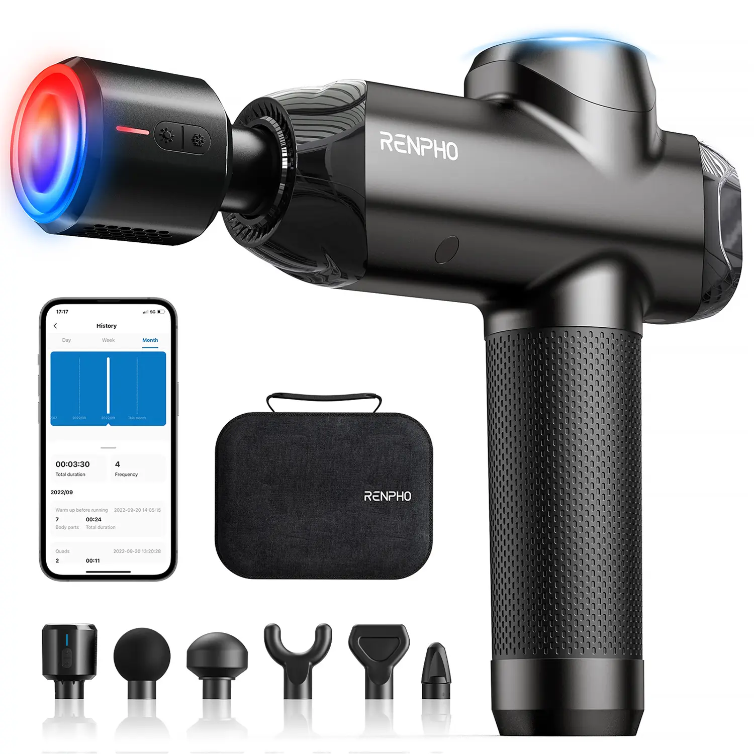 Includes 5 heads + 1 heating/cooling head with 8 temperature settings to speed recovery or ease tension.