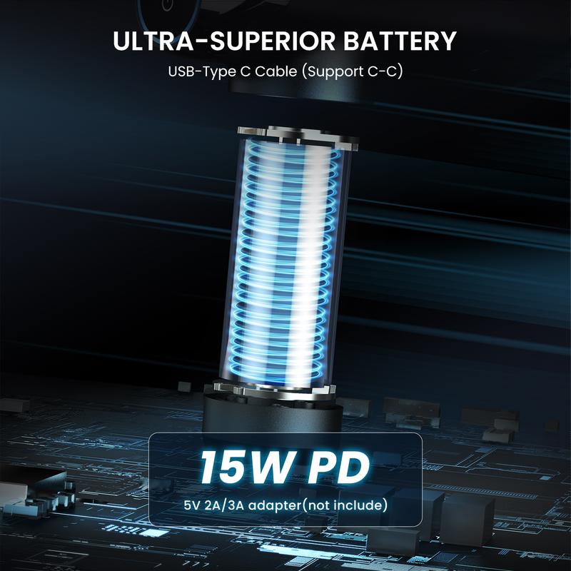 USB-C compatible with 15W PD support; LED display shows battery, speed, and connection status.