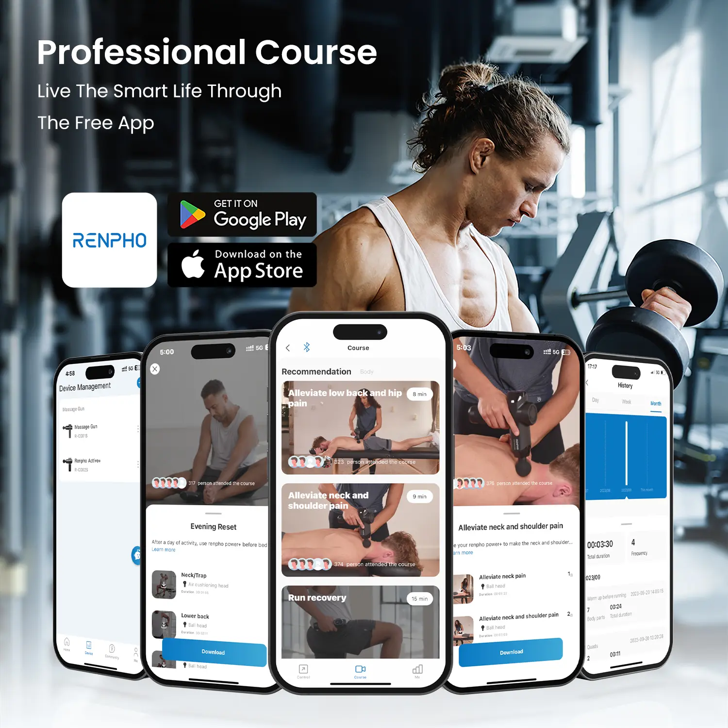 Adjust 6 speed levels via Bluetooth and access professional video courses for targeted muscle guidance.