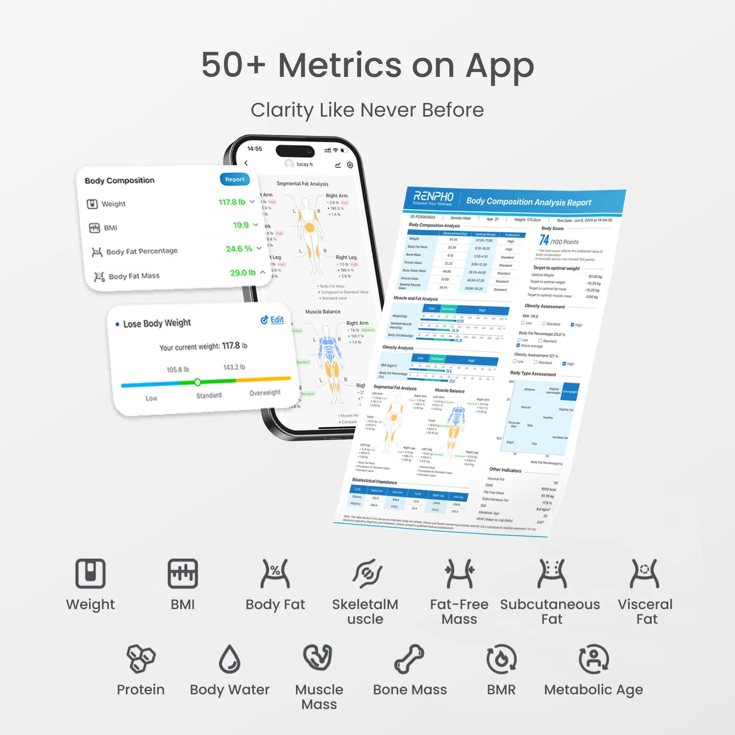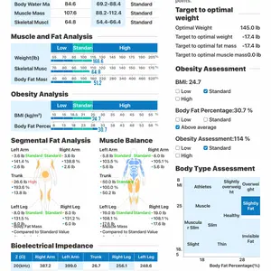 ·Detailed App Reports – Generates printable health analyses (including segmental fat data) to personalize fitness and nutrition plans.
