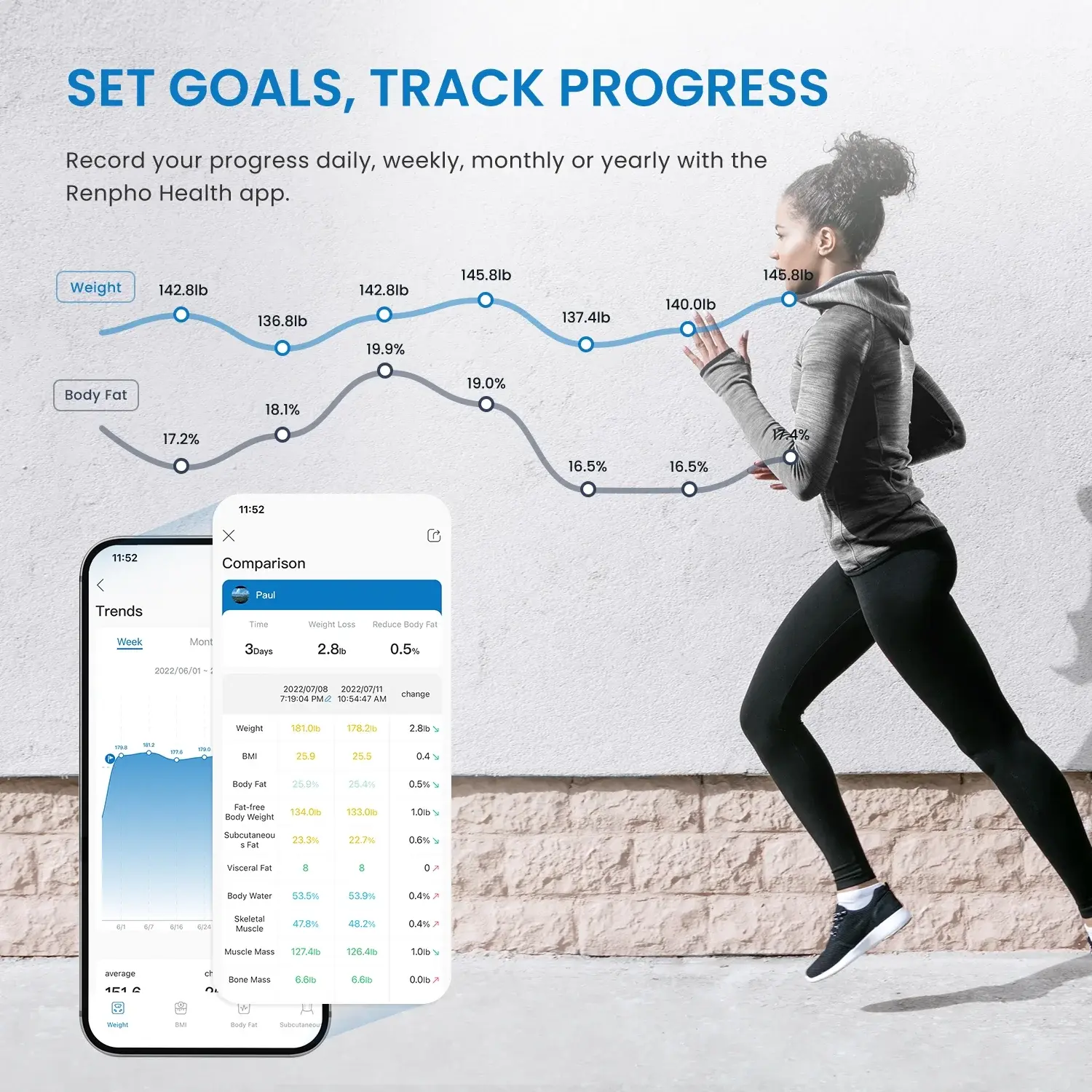 Auto-syncs to the RENPHO Health App with real-time charts.