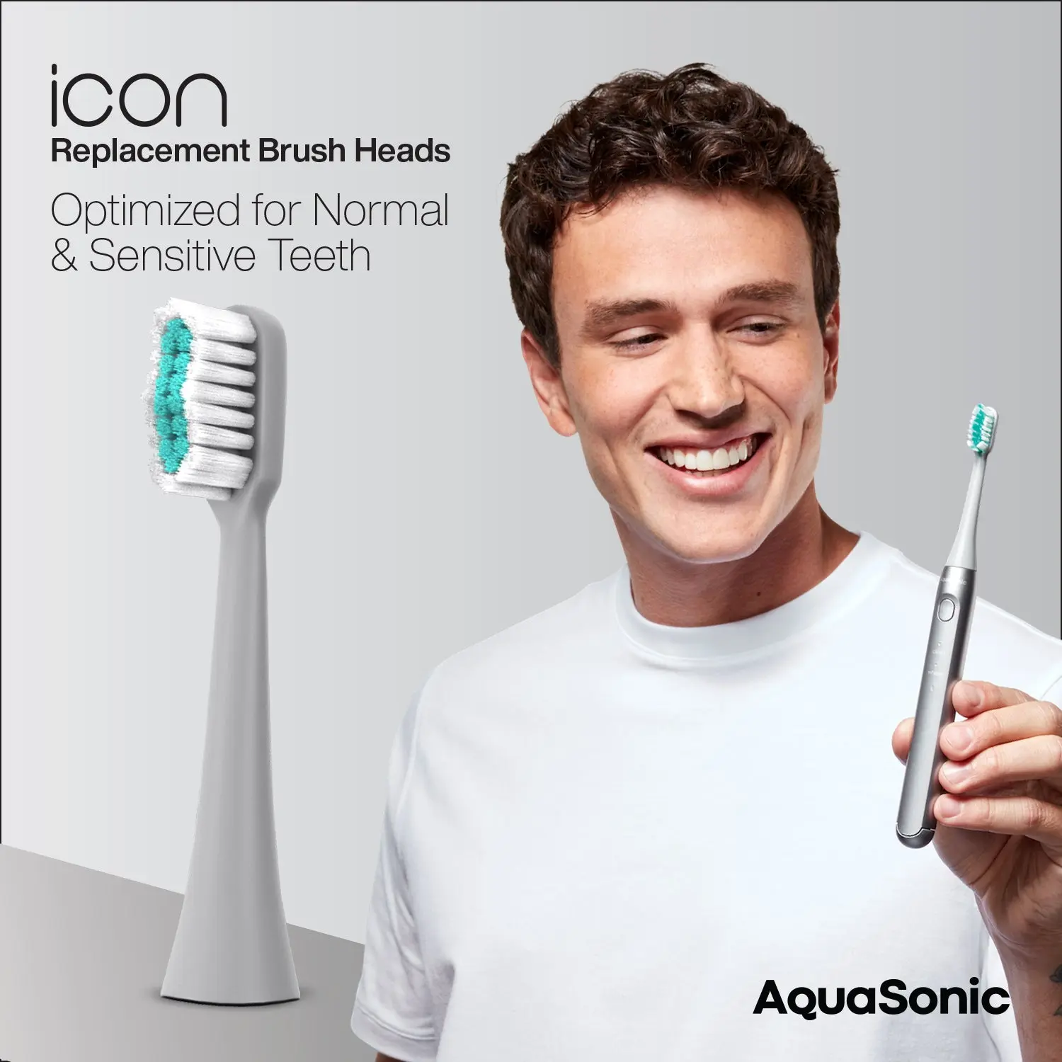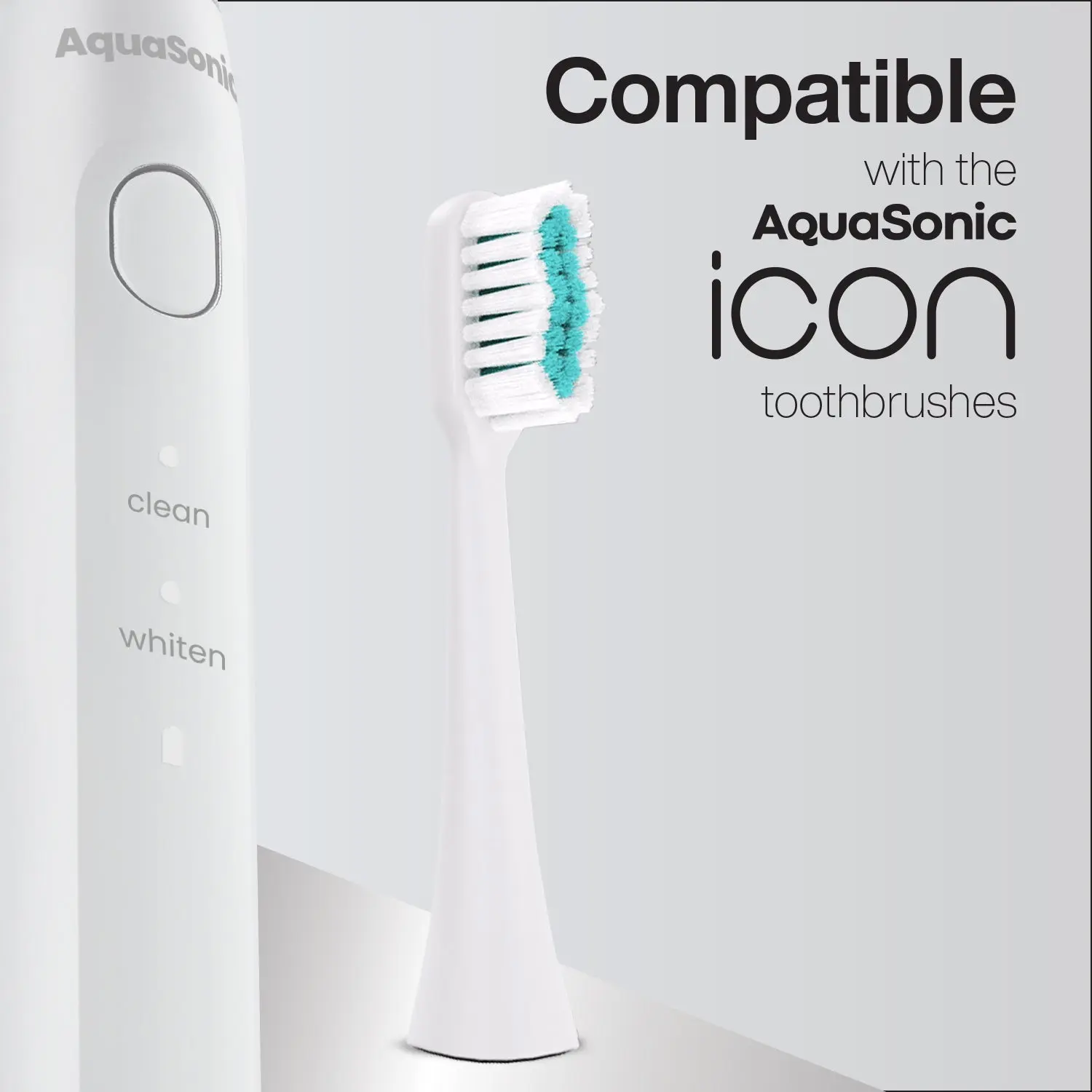 ·REPLACEMENT BRUSH HEADS: Keep your smile iconic with AquaSonic Icon brush heads. Uniquely engineered with densely-packed, variable-length bristles, these brush heads effectively clean teeth and gums, for the ultimate in oral care.