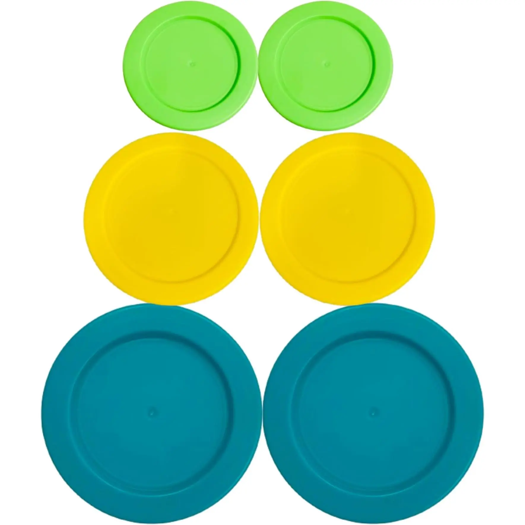 VALUE PACK BUNDLE INCLUDES - 6 Pack of 2 Cup/470 mL, 4 Cup/950 mL, 7 Cup/1.65 L Round Lids (2 of Each Size), Spring Green, Yellow, Turquoise (Lids Only - *Glass Containers Not Included*)