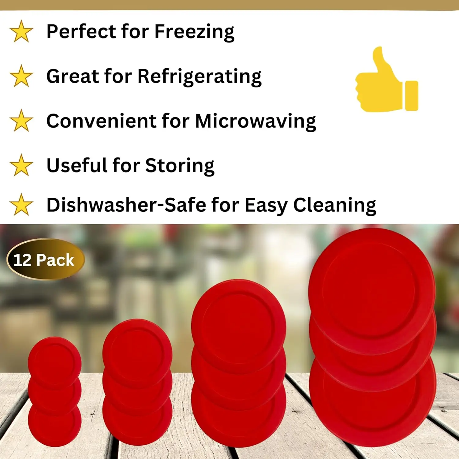 VALUE PACK BUNDLE INCLUDES - 12 Pack of 1 Cup/236 mL, 2 Cup/470 mL, 4 Cup/950 mL, 7 Cup/1.65 L Round Lids (3 of Each Size), Red (Lids Only - *Glass Containers Not Included*)