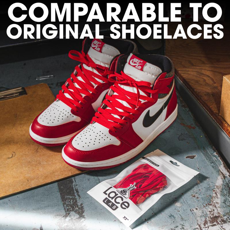 AJ1 High - 72" if tying at 8th eyelet. Use 63" for untied look at 8th eyelet. AJ1 Mid / AJ 4,5,6 - 63" AJ1 Low / AJ 3 - 54" For other shoes, please refer to our Sizing Chart.
