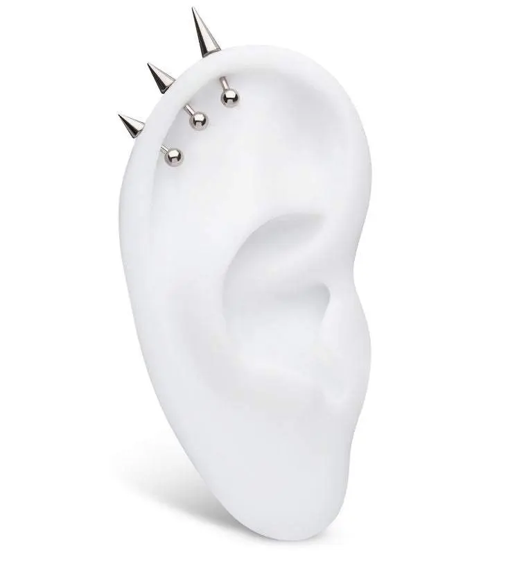 Stay stylish and well-accessorized with these replacement titanium spikes! Sold individually and available in 16G or 14G with a variety of spike sizes, these internally threaded spikes are ASTM F-136 Titanium, ensuring durability and an enduring style. Great for internally threaded straight, curved, or circular barbells! In the menu, the measurements are (W x L) in mm.