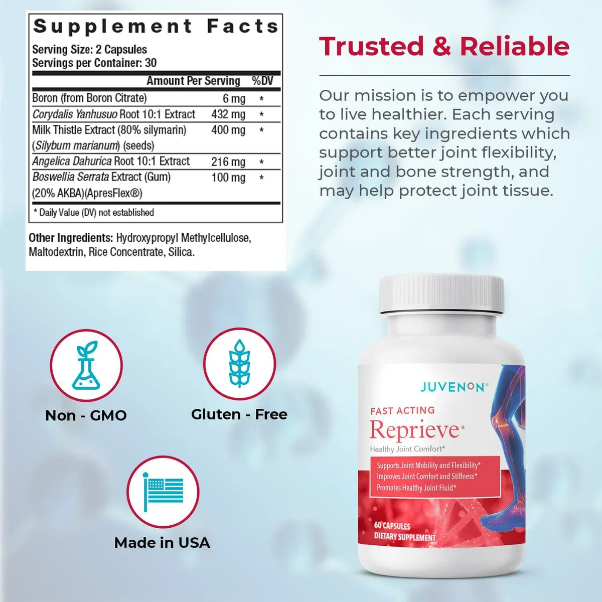 And we’ve harnessed the pain fighting power of these plants to create a formula that Conquers the REAL Cause of Joint Pain called... REPRIEVE ... based on this ground-breaking medical discovery and confirmed by the world’s leading universities.