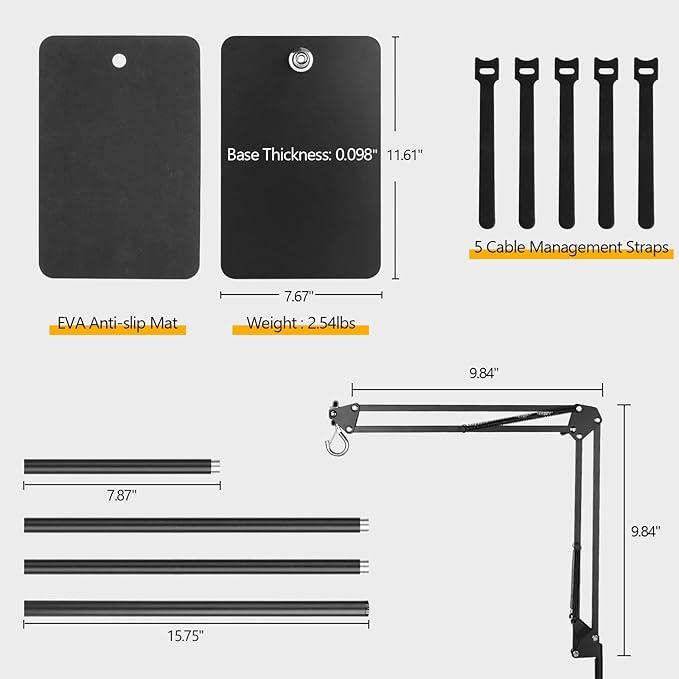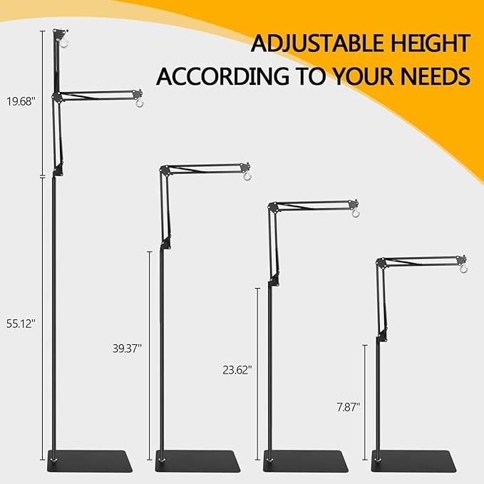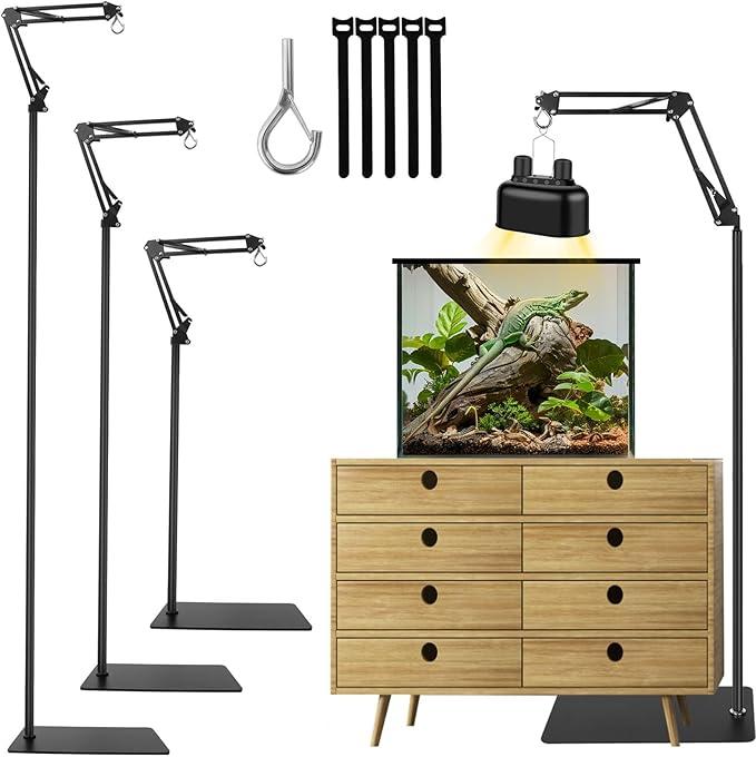 ·Adjustable Height 7.87-74.8" : Hygger zoo reptile heat lamp stand M with three 15.75" rod, one 7.87" rod and one 19.68" swing arm (fully extended) can be connected to form different heights 7.87"-23.62"-39.37"-55.12"-74.8". The adjustable heat lamp stand for reptiles can provide optimal height hanging fixtures for appropriate temperature and lighting for your pet