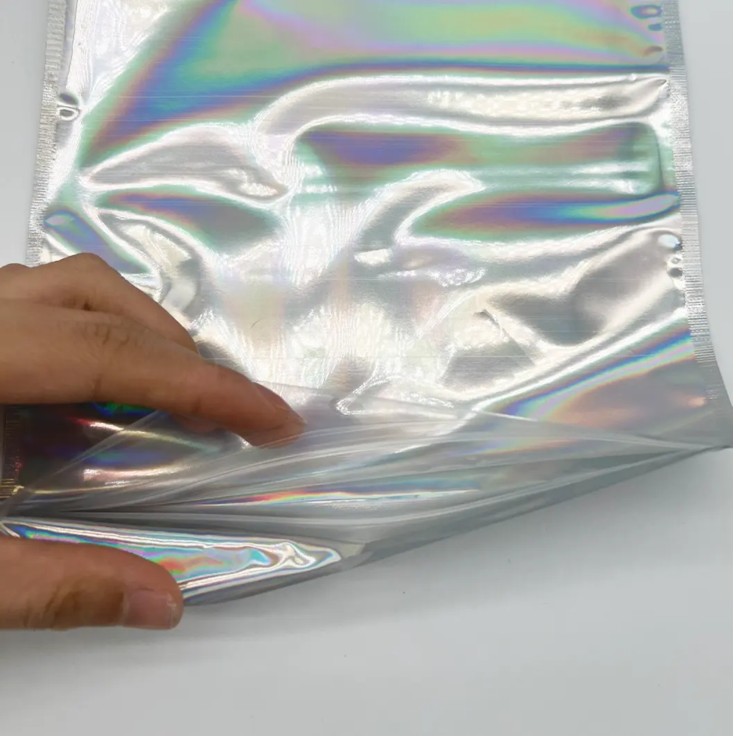 JBEXTENSION 1 Pcs Resealable Smell Proof Bags Foil Pouch Bags, Flat Clear Storage Bags Plastic Packaging Foil Mylar Bags (Holographic Rainbow Color)