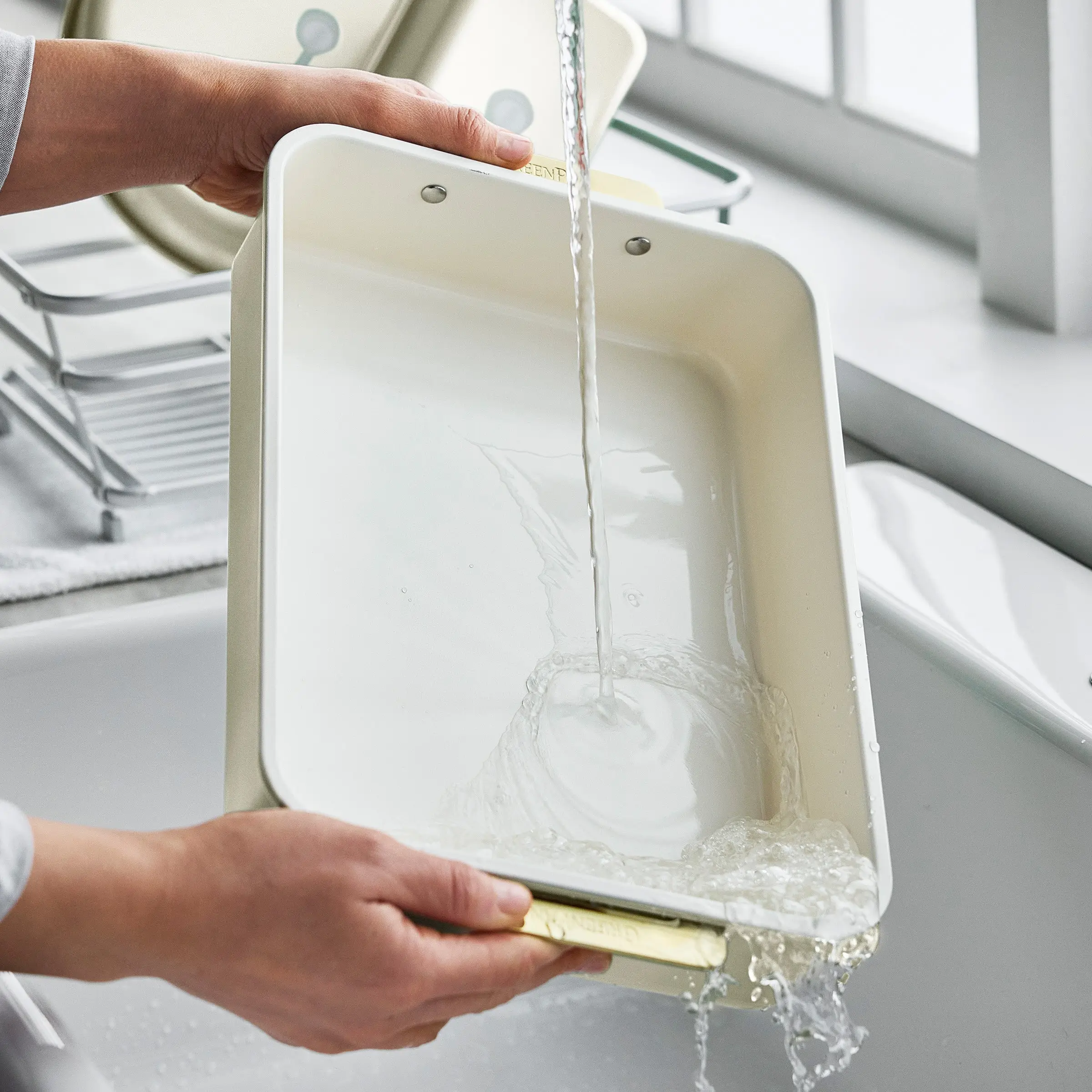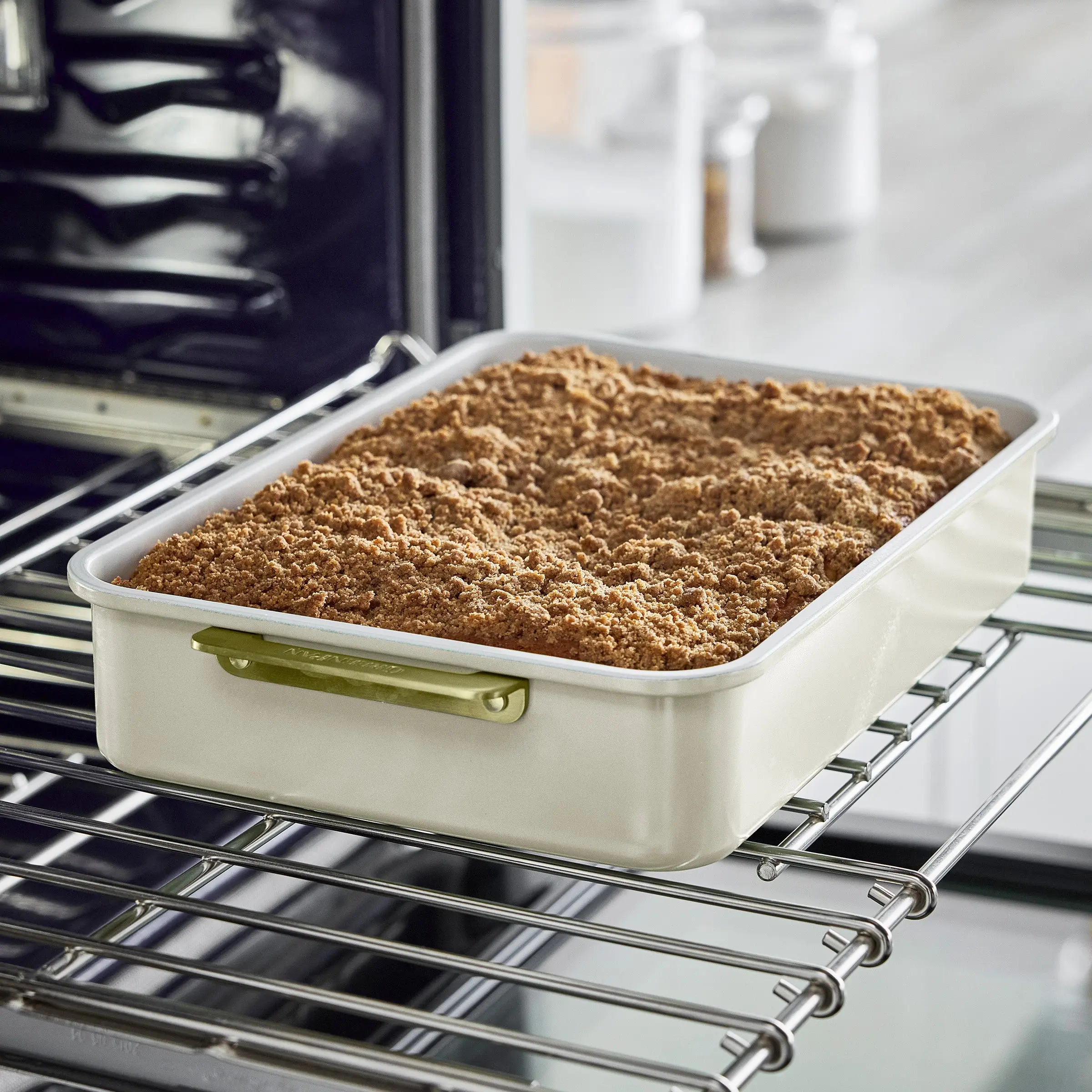 Our Reserve Rectangular Pan combines durability and style for all your baking needs. Perfect for roasting veggies, baking casseroles and more – the aluminized steel ensures even heat distribution, while our PFAS-free nonstick guarantees easy food release and healthier meals.