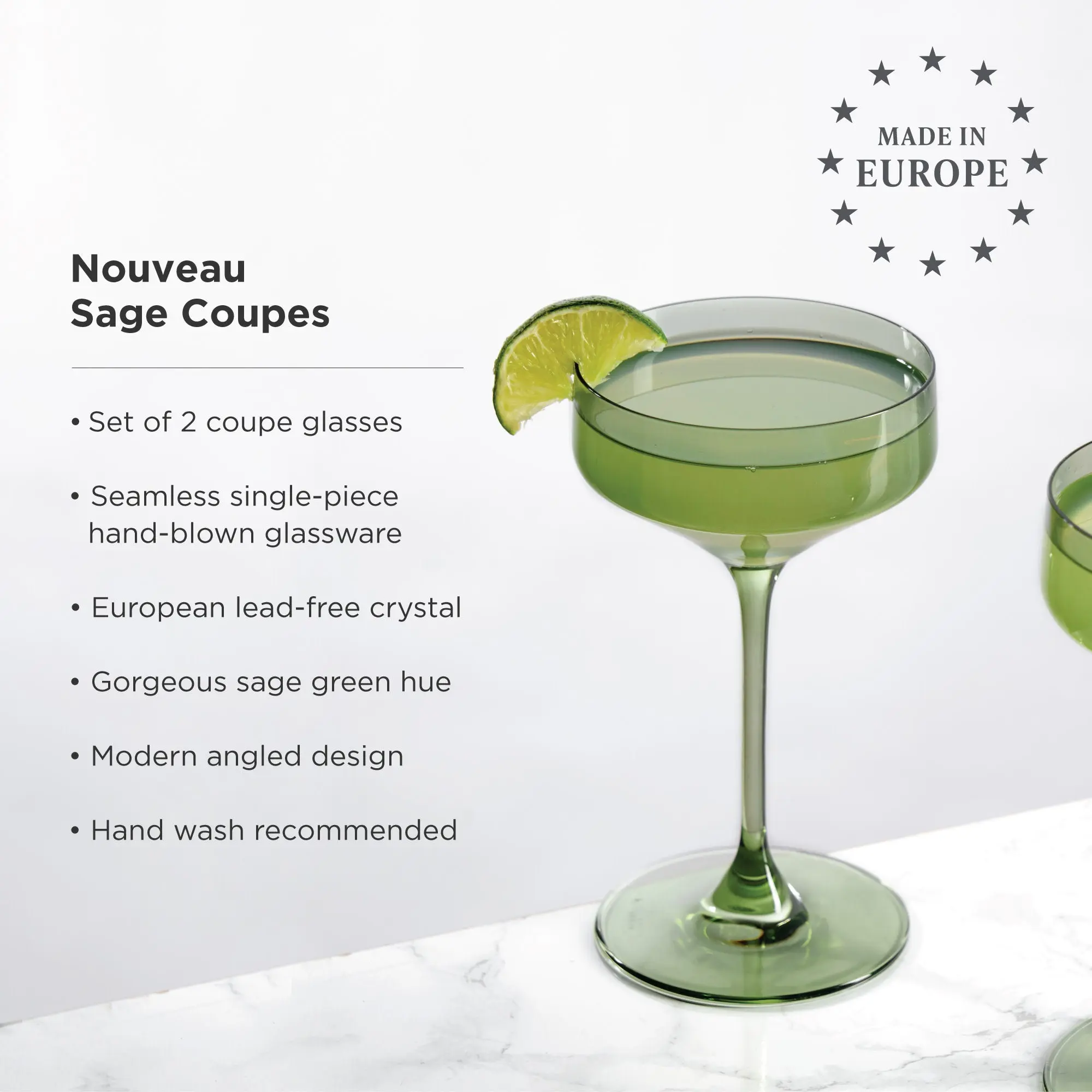 Reserve Nouveau Crystal Coupe Glasses in Sage Set of 2