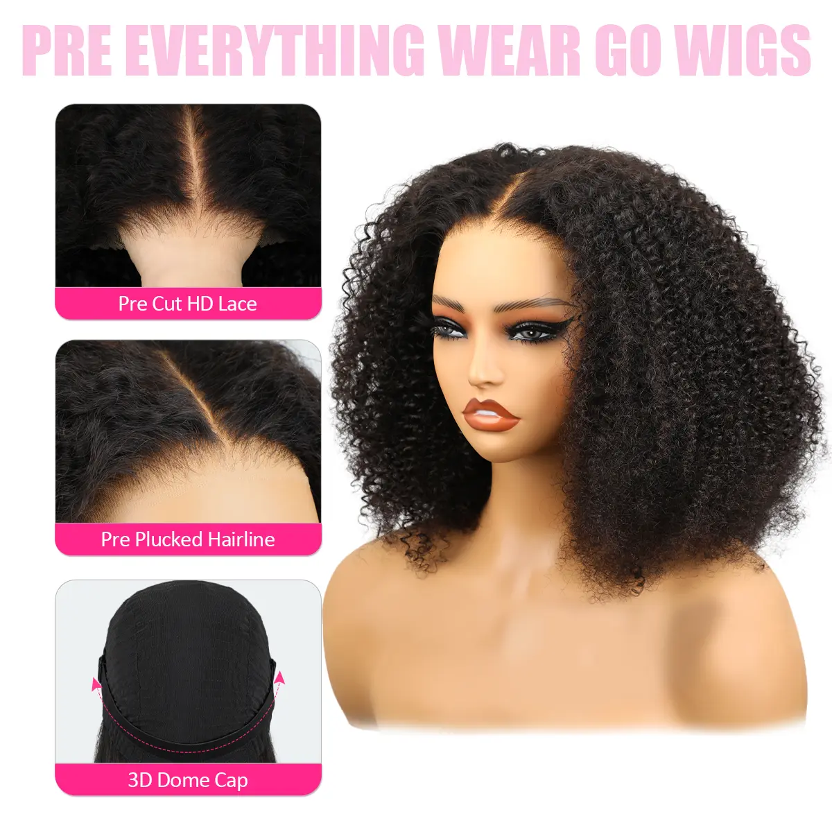 5. [Clearance Sale] Reshine Afro Curly Wear Go Glueless Human Hair Wigs Pre-cut HD Lace Wigs For Women