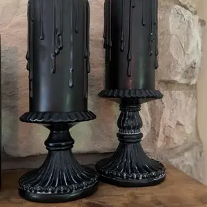 Gear up for a goth-style Halloween season when you put these pedestal candles on display. Each resin pillar is battery operated so there's no frightful open flame. Let them lend a little mystery and illumination to your decor. From Sister Road.