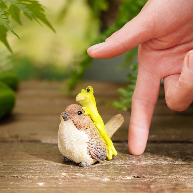 5. Resin Cartoon Frog Riding Sparrow Figurine, Home Decor Ornament, Cute Animal Design for Garden Patio Indoor Table Decoration
