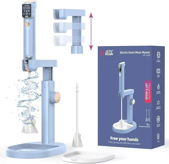 Got my mixer today. Came quickly. Looks amazing. I’m sure this is going to make mixing my resin so much easier. Cannot wait to mix up some resin. Great buy. Very sturdy and comes with two different size paddles. 3 speed levels.