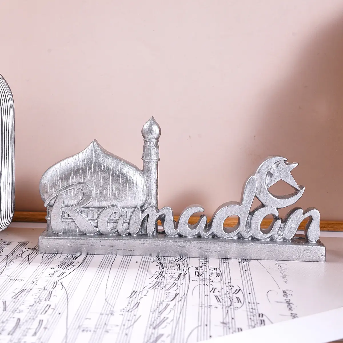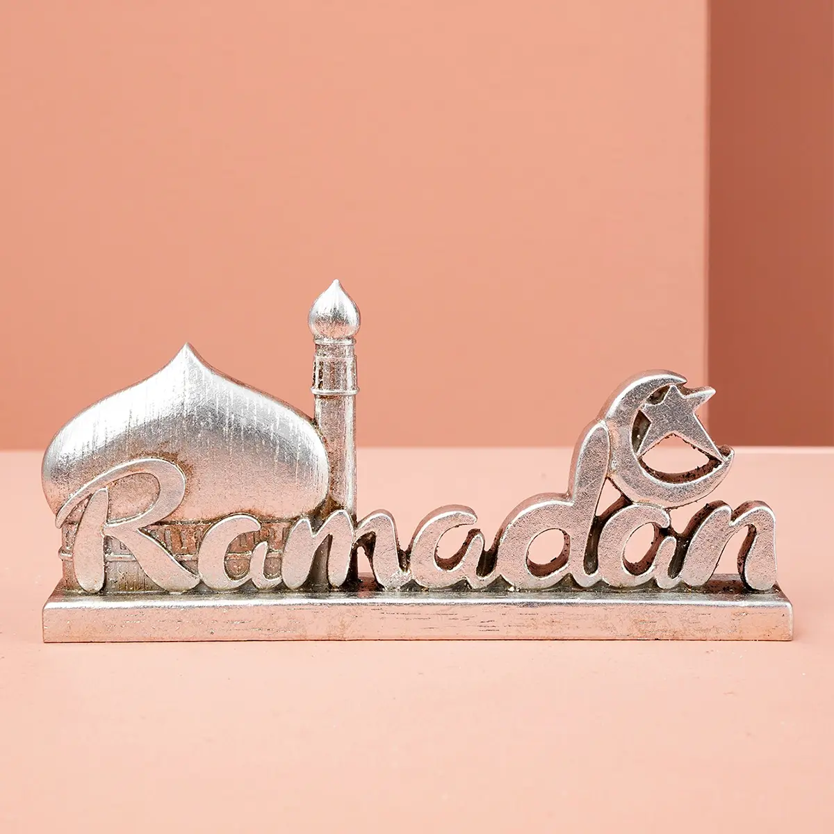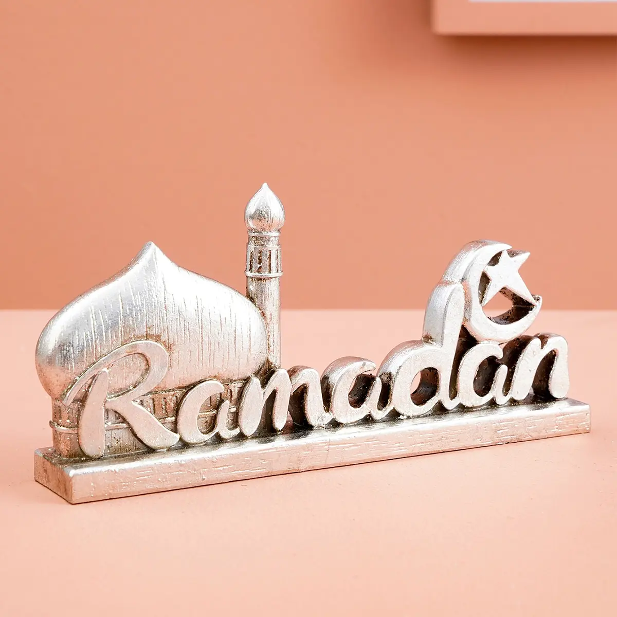 Resin Ramadan Letter Decoration, Silver-Colored Vintage Design Festival Ornament, Stylish Religious Decor, Religious Home Decor, Gift for Eid Mubarak & Hajj
