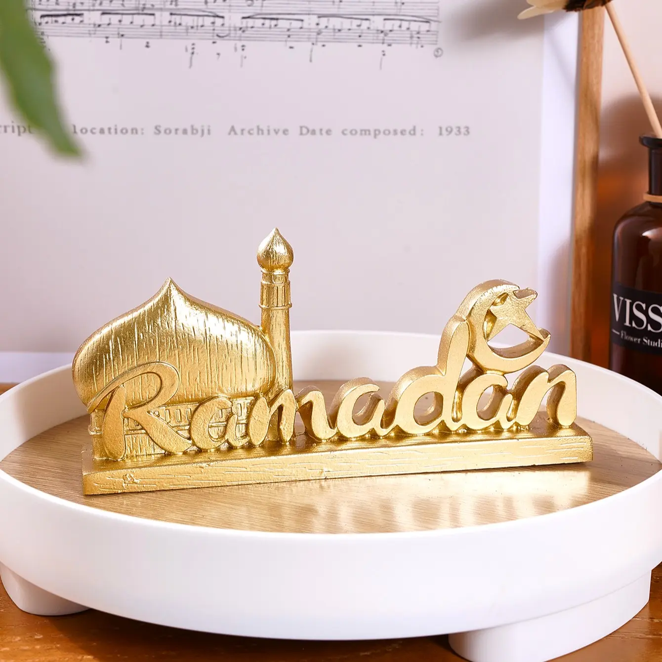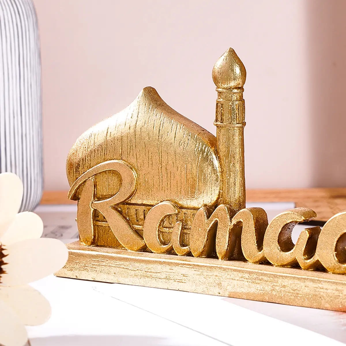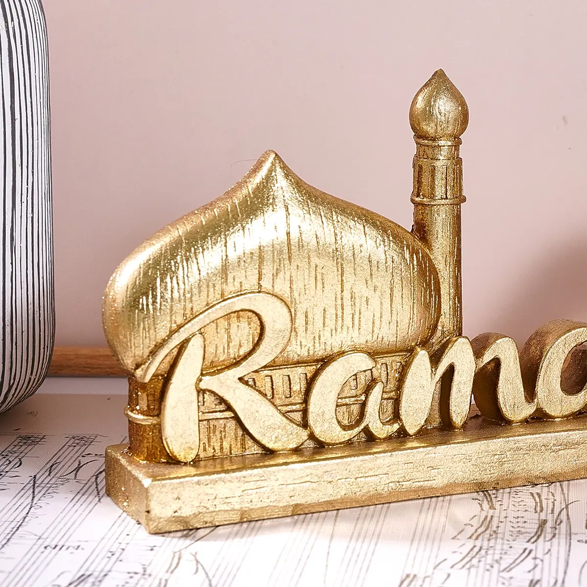Resin Ramadan Letter Decoration, Silver-Colored Vintage Design Festival Ornament, Stylish Religious Decor, Religious Home Decor, Gift for Eid Mubarak & Hajj