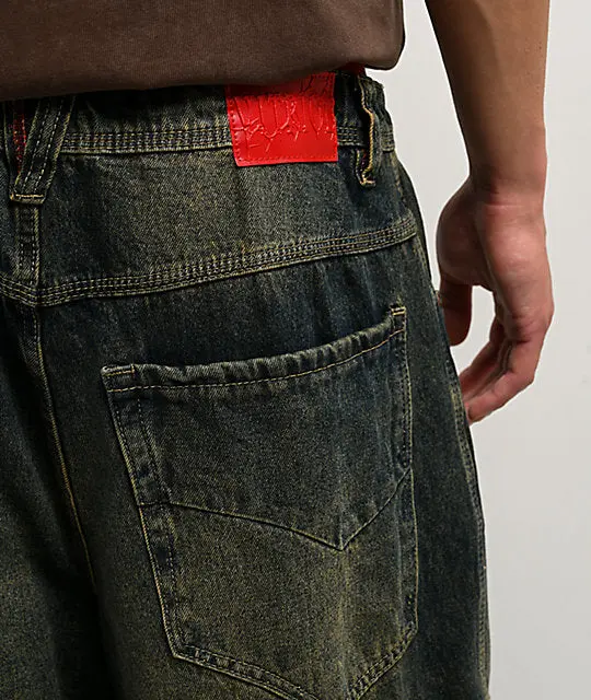 Vitriol Respawn Embroidered Blue Wash Ultra Wide Jeans