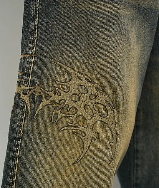 5. Vitriol Respawn Embroidered Blue Wash Ultra Wide Jeans