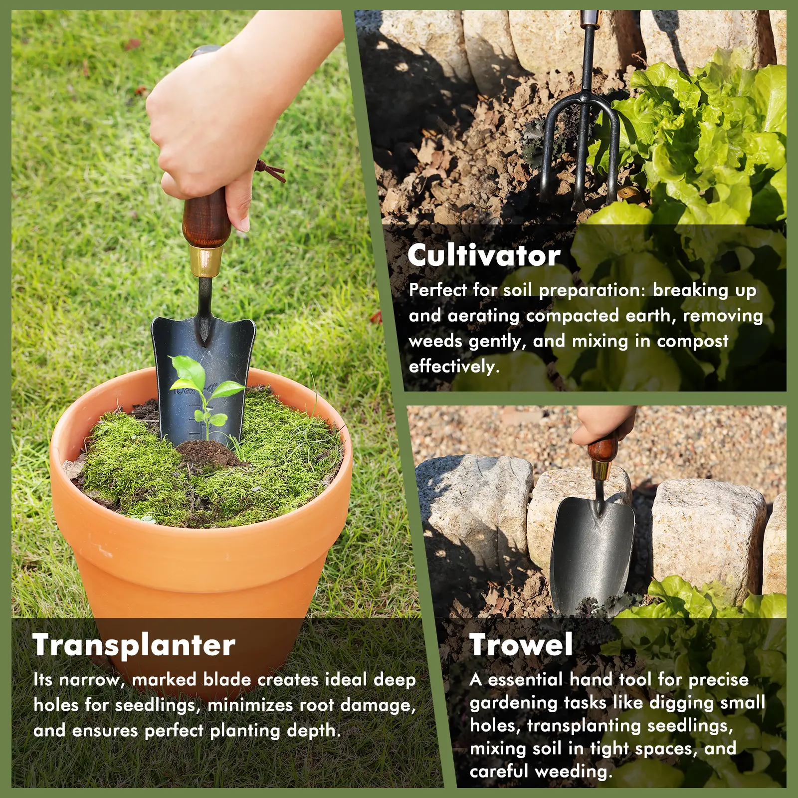 3-in-1 Garden Tool Set – Trowel, Transplanter & Cultivator
