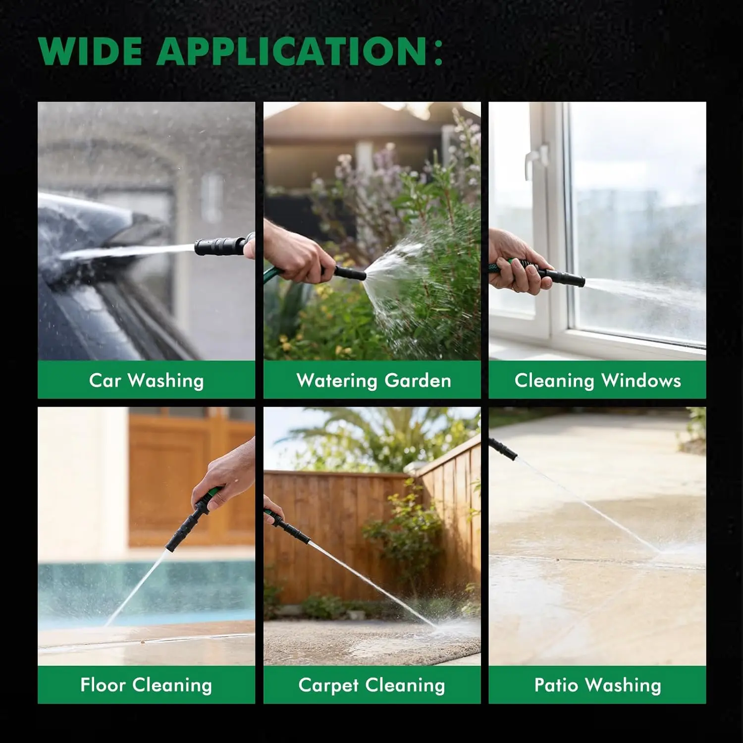 ·Universal Fit for All Standard Garden Hoses: Designed with a standard 3/4" threaded inlet, this nozzle fits all standard garden hoses perfectly. The included rubber gaskets enhance sealing performance and ensure a stable, leak-free connection. It works great for gardening, car washing, patio cleaning, and all outdoor watering needs.
