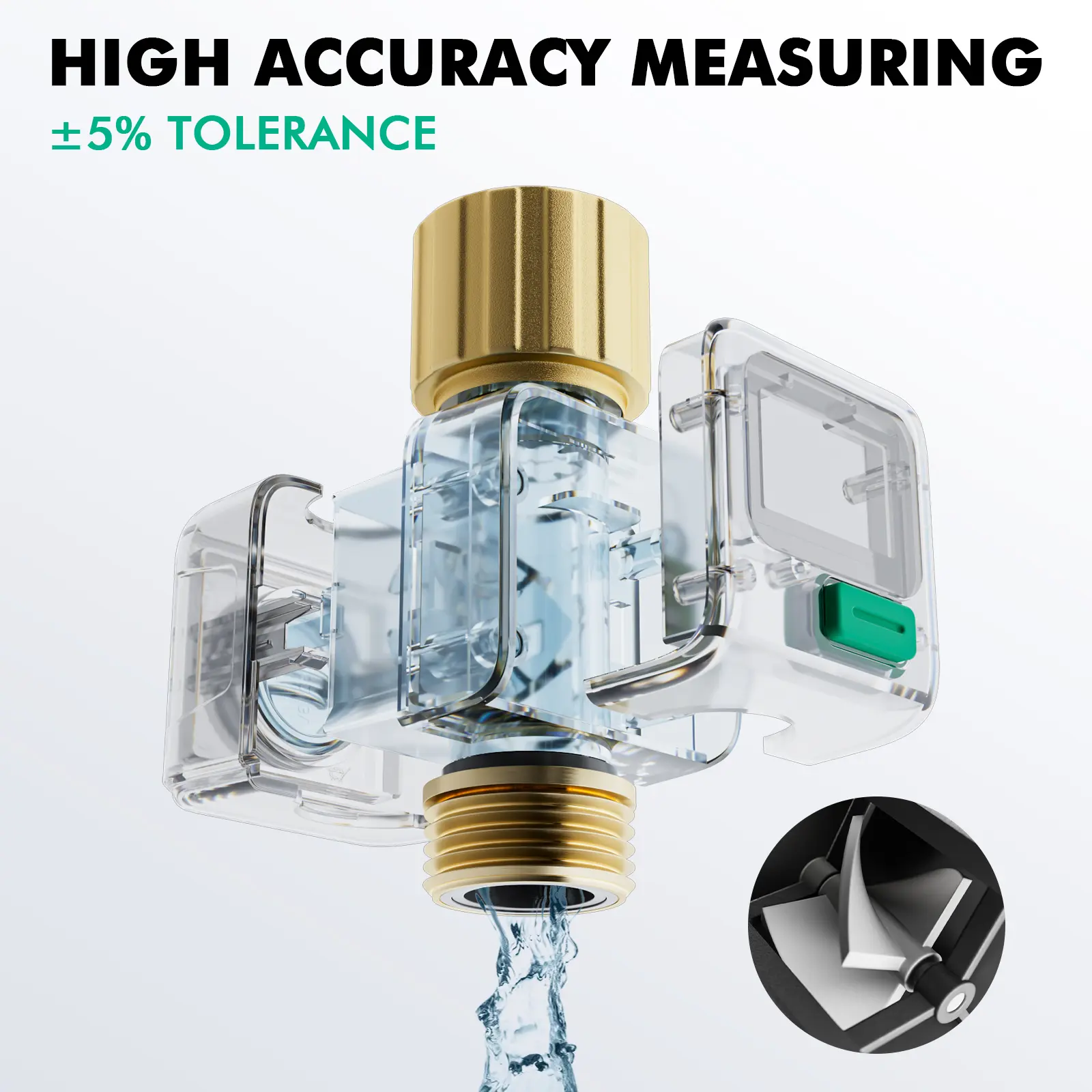 ·Built-in with hall type sensor and IC chipset, which provide more accurate measurement and precise calculations. The measurement tolerance is less than 5%, great to measure how much amount of water are used and prevent over-watering.