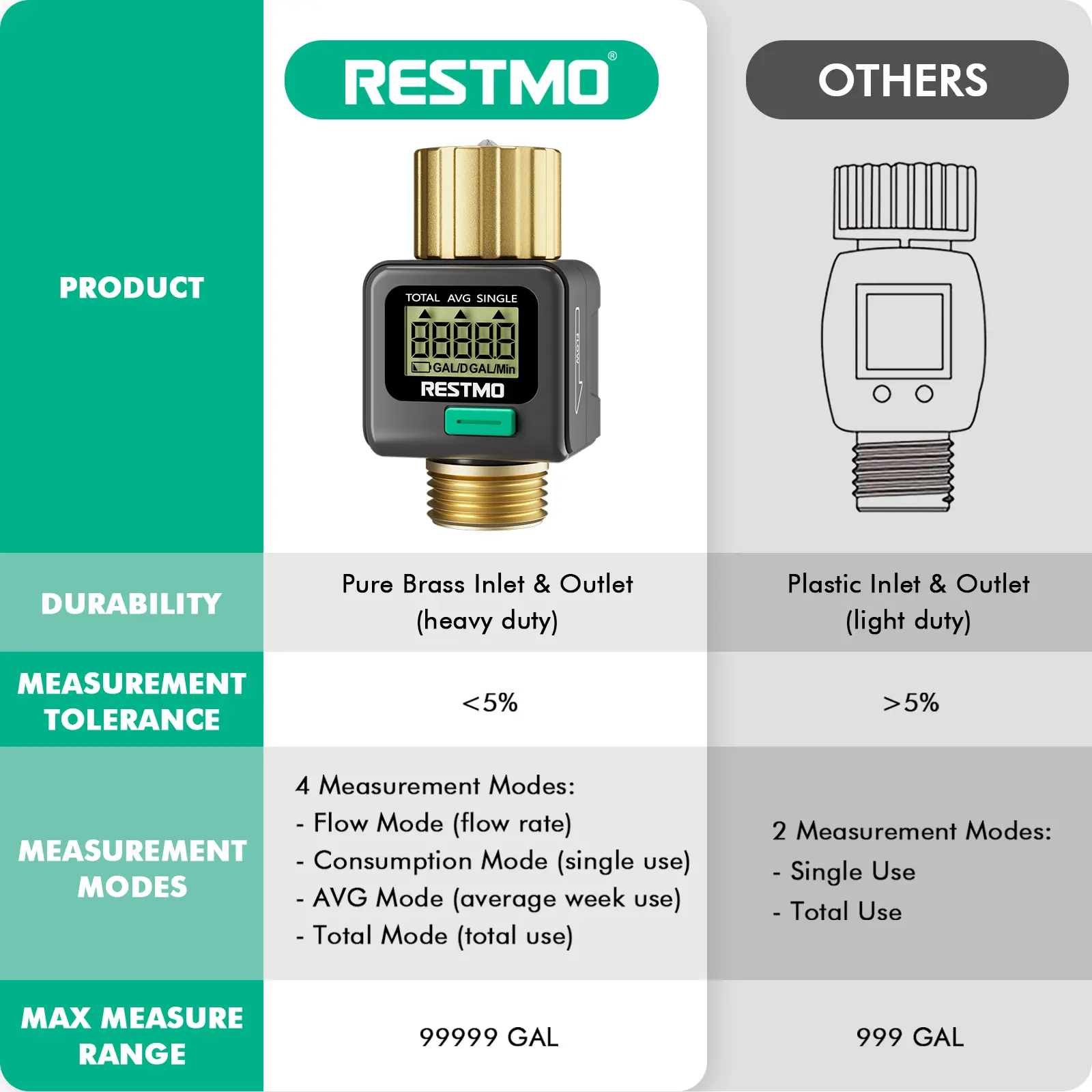 ·Rugged design with premium heavy duty ABS material, this water meter is weatherproof and durable, great to resist UV, sunshine, and rain. The IPX6 waterproof grade ensures more stability for outdoor use.