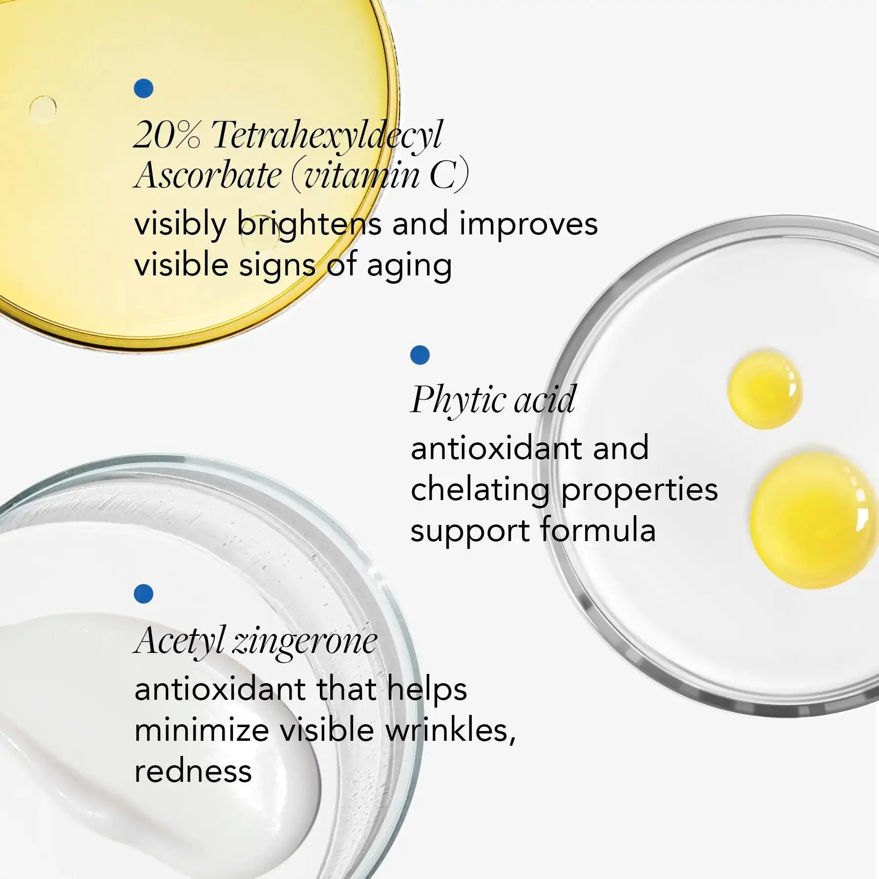 | Ingredients | AQUA/WATER/EAU,TETRAHEXYLDECYL ASCORBATE,PENTYLENE GLYCOL,ETHOXYDIGLYCOL,ACETYL ZINGERONE,GLYCERIN,TOCOPHEROL,PHENOXYETHANOL,SCLEROTIUM GUM,FERULIC ACID,POLYGLYCERYL-6 POLYRICINOLEATE,1,2-HEXANEDIOL,SODIUM HYALURONATE,ETHYLHEXYLGLYCERIN,LACTOBACILLUS/PORTULACA OLERACEA FERMENT EXTRACT,CITRUS AURANTIUM DULCIS (ORANGE) PEEL OIL,PELARGONIUM GRAVEOLENS (GERANIUM) FLOWER OIL,LIMONENE,CITRONELLOL,GERANIOL,LINALOOL,LEUCONOSTOC/RADISH ROOT FERMENT FILTRATE,LACTOBACILLUS,COCOS NUCIFERA (COCONUT) FRUIT EXTRACT. |