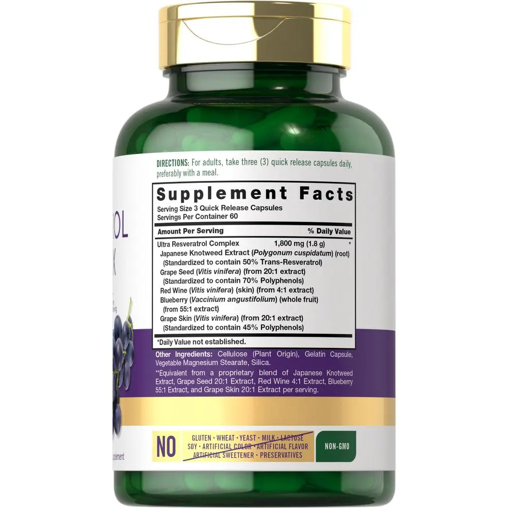** Gluten-free and non-GMO quick-release capsules make it easy to receive this top source of Resveratrol for a balanced routine!