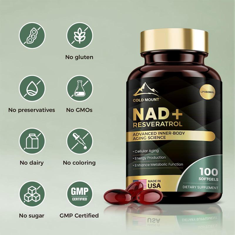NAD+ Resveratrol - Anti-Aging & Energy Support with Liposomal Formula | 100 Softgels-MADE IN USA