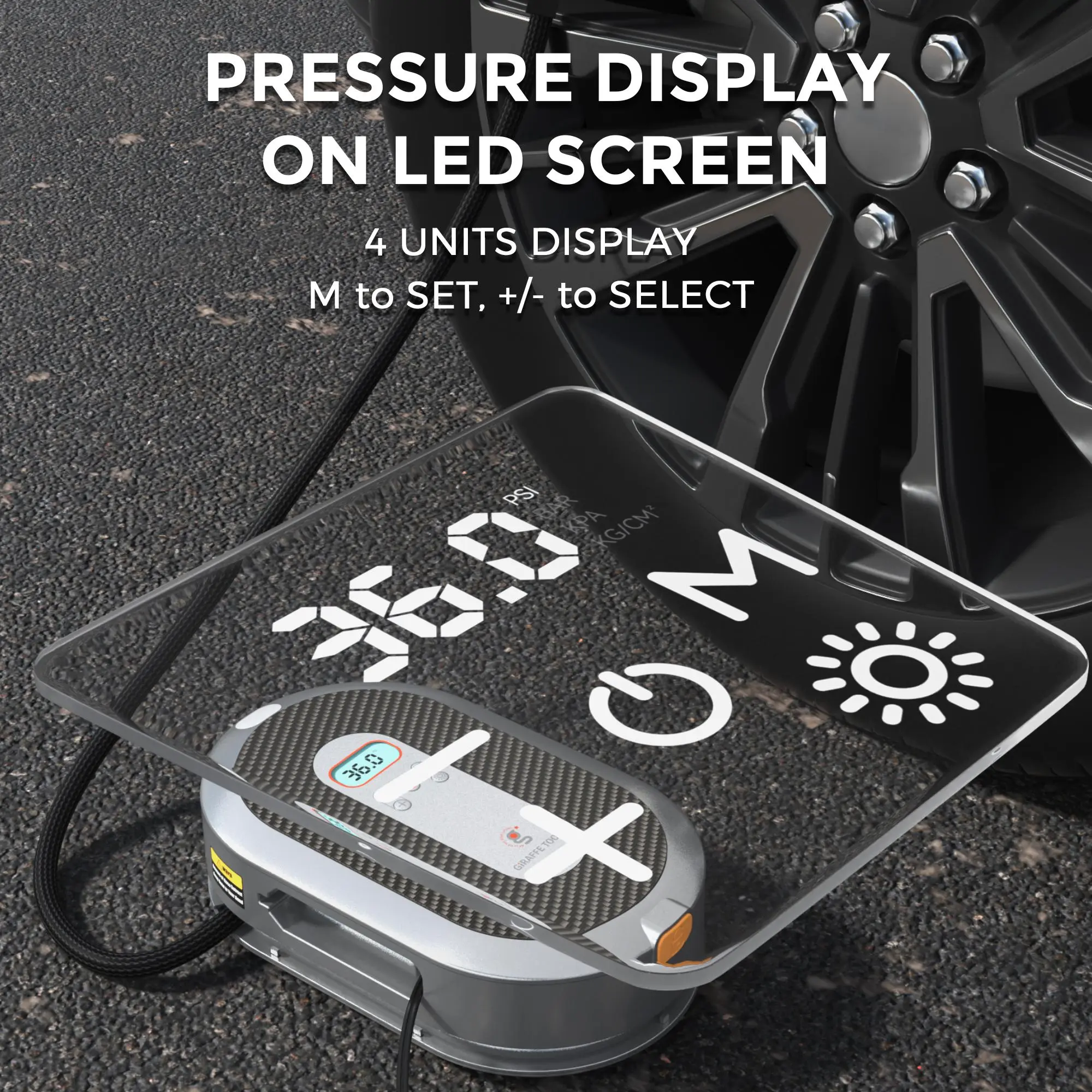 Resistant to high and low temperatures, this inflator remains reliable. It features real-time monitoring and auto shutoff for precise inflation without constant supervision. The continuous display units include KPA, PSI, BAR, and KG/CM².