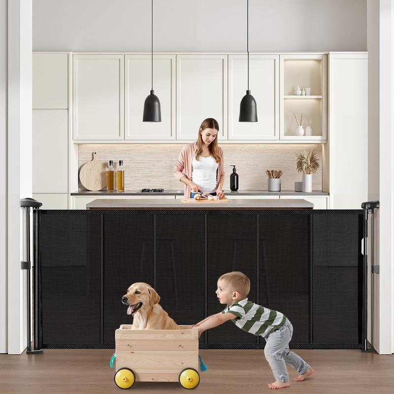 • Retractable Design: This black mesh gate can extend up to 71 inches wide, and the mesh is 34 inches tall, allowing you to adjust the opening size as needed. The retractable design makes it easy to store when not in use, taking up minimal space and keeping your home tidy and spacious