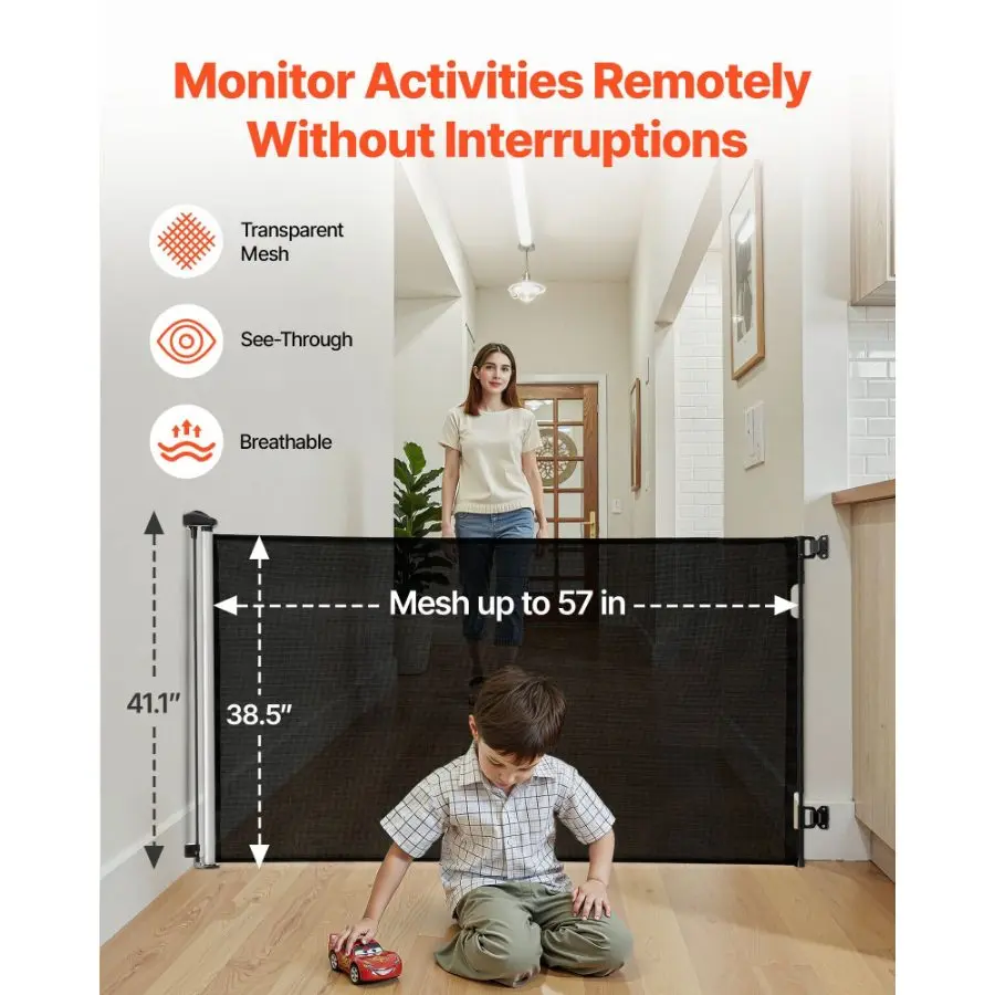 Retractable Baby Gate, Extends to 57 inch Wide, 38.5 inch Tall, with Lock, Easy to Use, Walk Through Without Tripping, Mesh Dog Gate for Stairs, Hallways, Indoor/Outdoor, BlackRetractable Baby Gate, Extends to 57 inch Wide, 38.5 inch Tall, with Lock, Easy to Use, Walk Through Without Tripping, Mesh Dog Gate for Stairs, Hallways, Indoor/Outdoor, Black