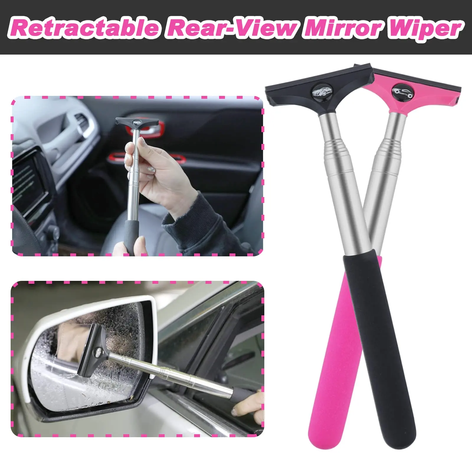 ·Retractable Design:Extendable mirror wiper handle helps you easy to deal with the both side mirror covered with rainwater cleaning.Up to 99cm/39inches length.When you are driving, you don't need to get off,open the driver seat window and remove the water on the rearview mirror, then, lengthen the handle to clean the other mirror. It takes you less than 30 seconds to finish all these steps. Great car accessories.