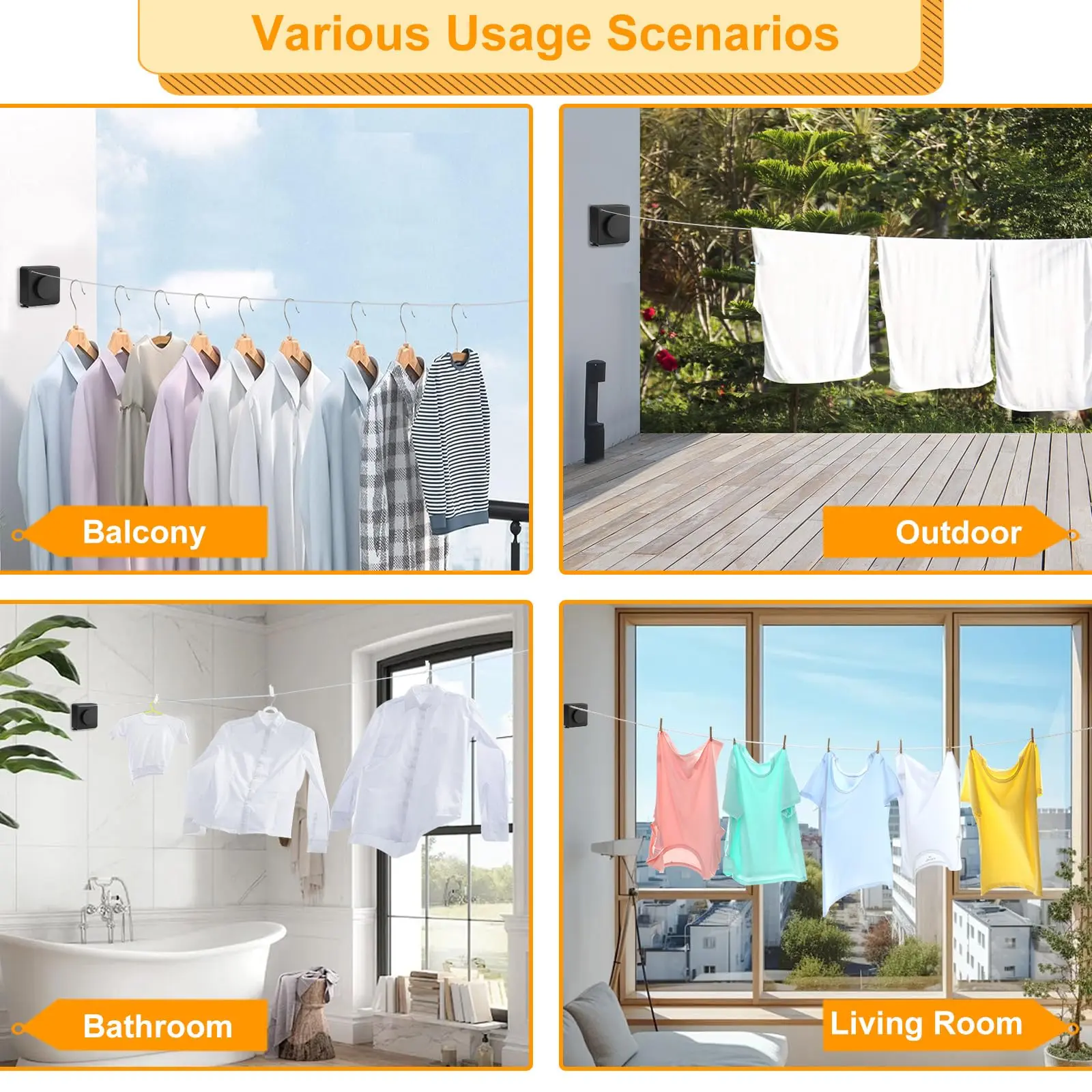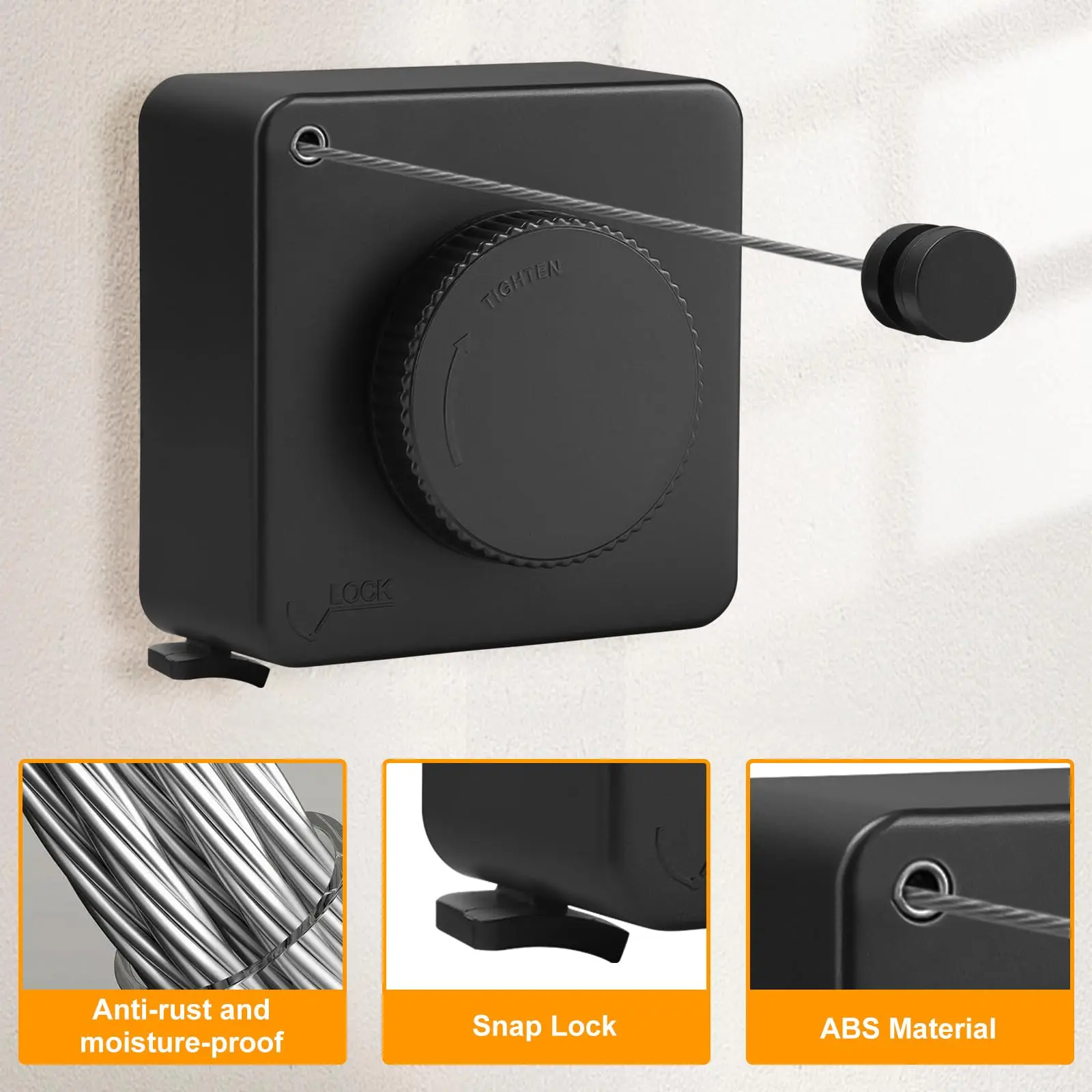 Constructed from high-grade ABS plastic, aluminum alloy base, and 304 stainless steel wire, this heavy-duty clothesline resists heat, rust, and water. Reliable performance indoors or out.