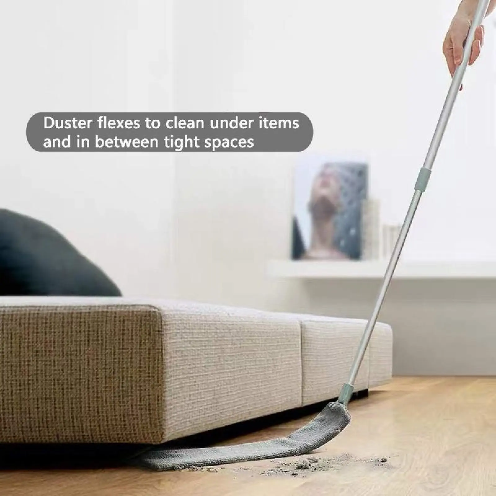 Free Bendable & Removable Head:Long Flat Flexible Cleaning Duster is the perfect cleaning tool for hard to reach places.The long flat profile easily glides between and under kitchen appliances, washer, dryer and deep cabinets.