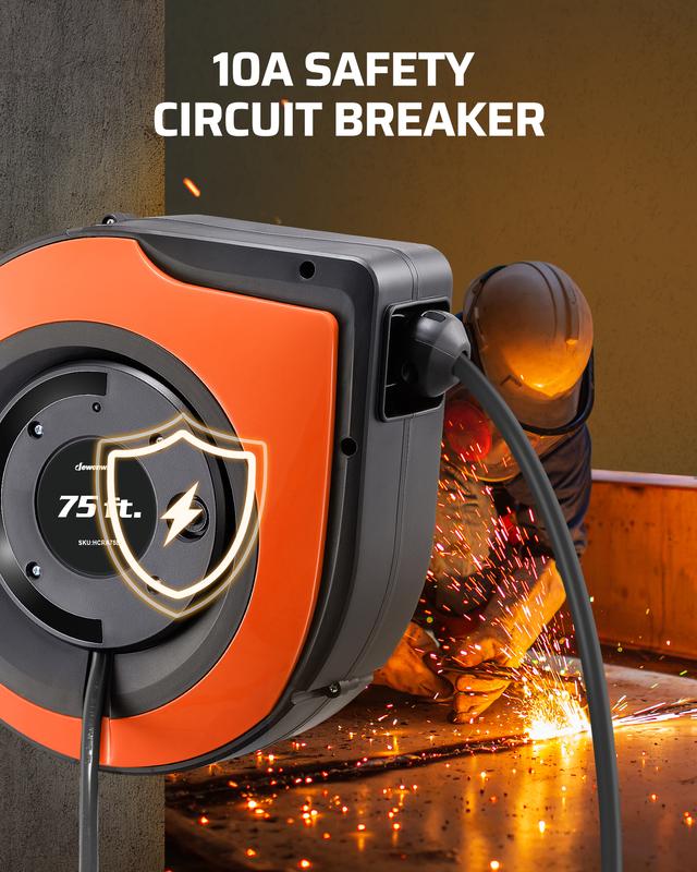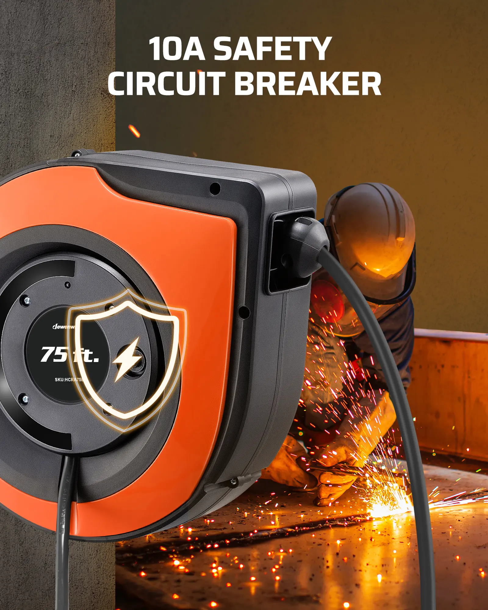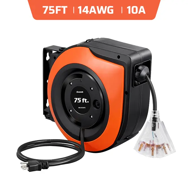 ·Heavy-Duty Power Cord Reel: Rated for 10A/125V/1250W.