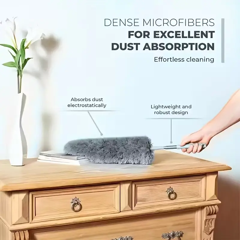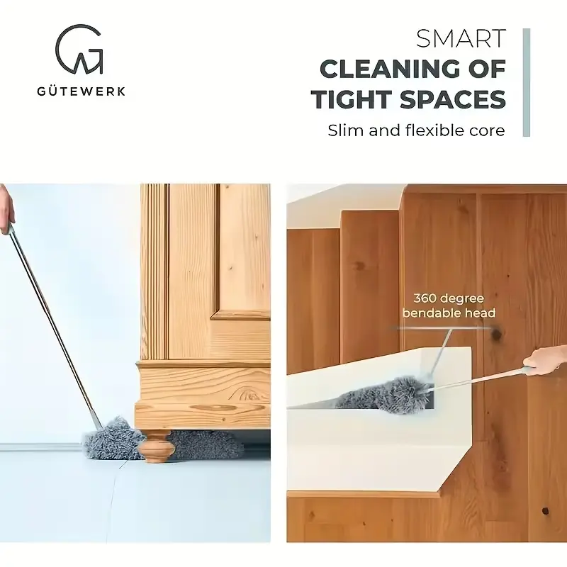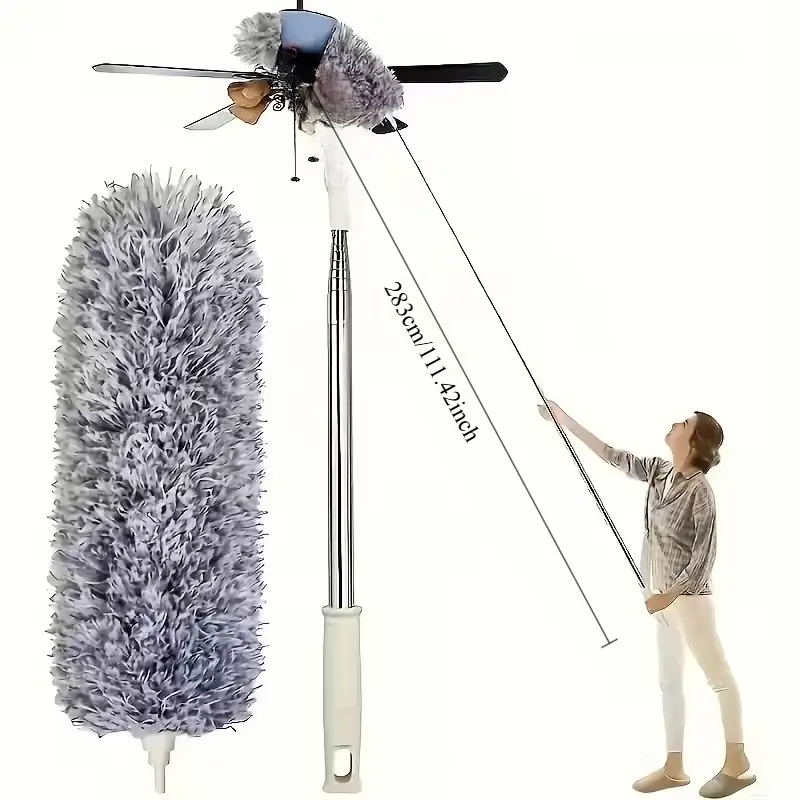 1-in-1 Retractable Extension Pole & Dusting Brush with Ergonomic Handle - Heavy-Duty Telescopic Pole, Washable Microfiber Heads for Wet/Dry Use, Multi-Purpose Ceiling/Furniture/Blind/Chandelier/Crevice Cleaning - Space-Saving Duster for Hard-to-Reach Areas (Ideal for Large Homes) - Multi-Purpose Dusting Brush with Retractable Pole, Wet/Dry Use, Ergonomic Grip & More, Duster With Extensible Pole, Duster Heavy Duty Extension Pole