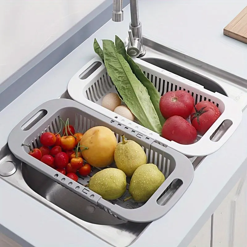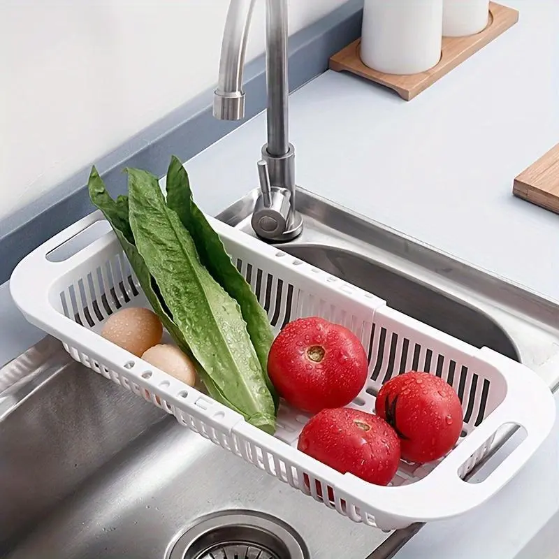 1pc Retractable Fruits And Vegetables Drain Basket, Extendable Over The Sink, Adjustable Strainer, Sink Washing Basket For Kitchen