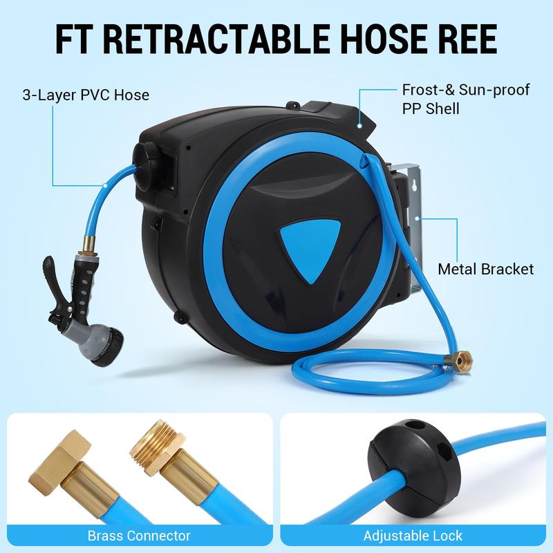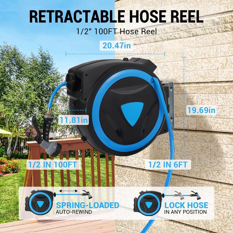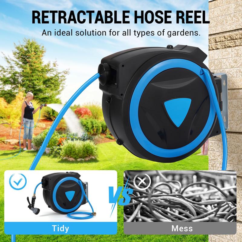 · 【Durable and compact】: Made of high-quality materials, this retractable garden hose reel is durable, and the compact design saves space, making it perfect for any garden or patio