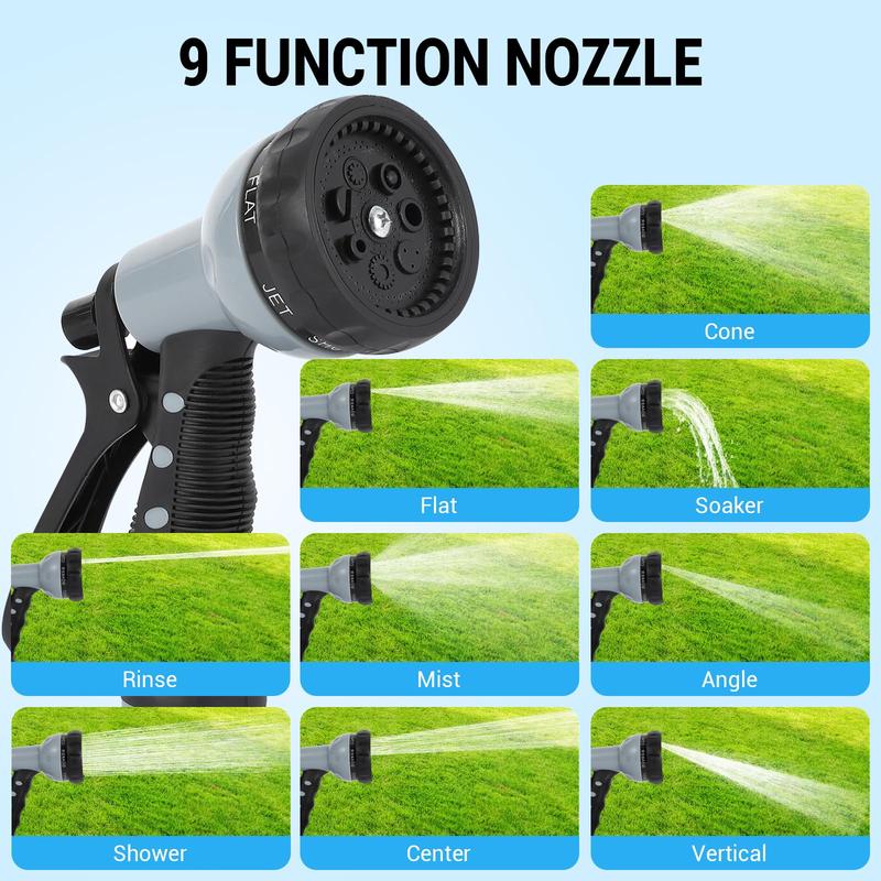 · 【9-Function Sprayer Nozzle】: This retractable hose reel comes with 9 pattern nozzles to meet all your watering needs. Choose from a variety of spray options including shower, center, flat, soak, mist, jet, triangle, rinse, and cone