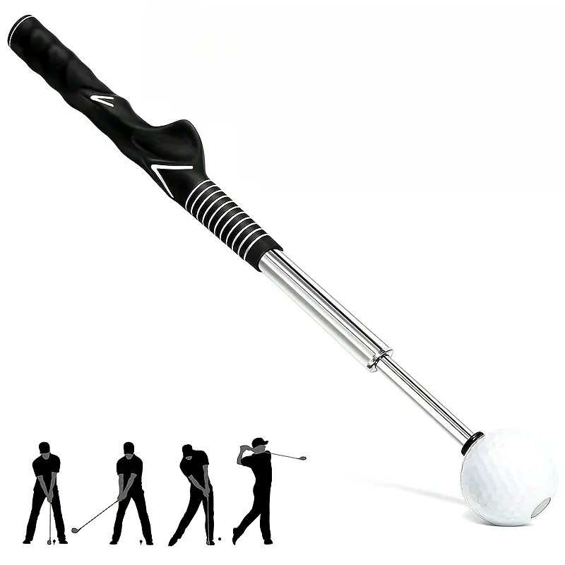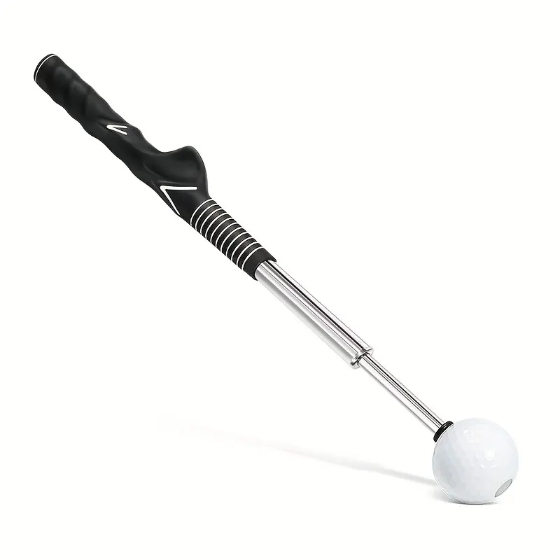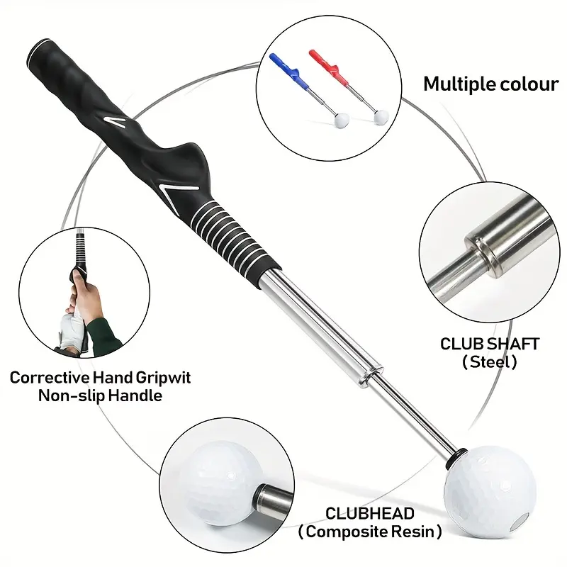 Perfect your golf swing.This telescopic and sound-designed golf swing trainer provides a realistic swing experience.When swinging, the club will extend and make a "click" sound to judge whether your swing is standard, thus improving your swing rhythm and flexibility.